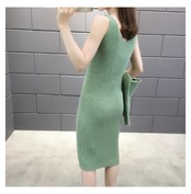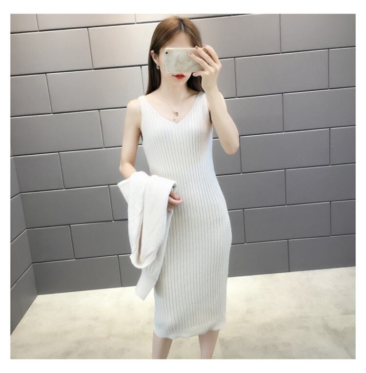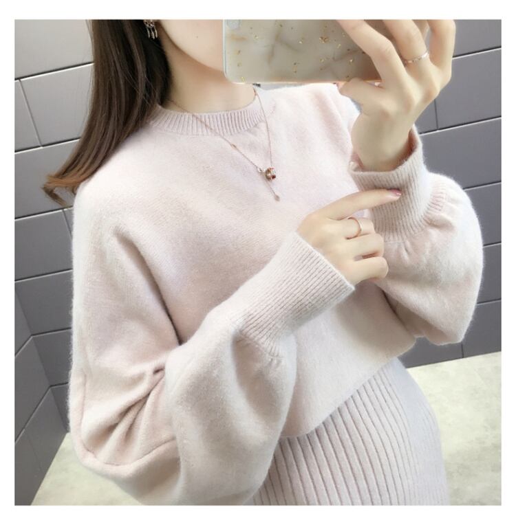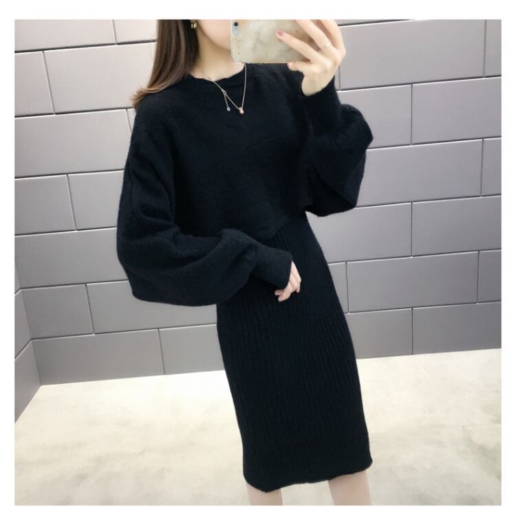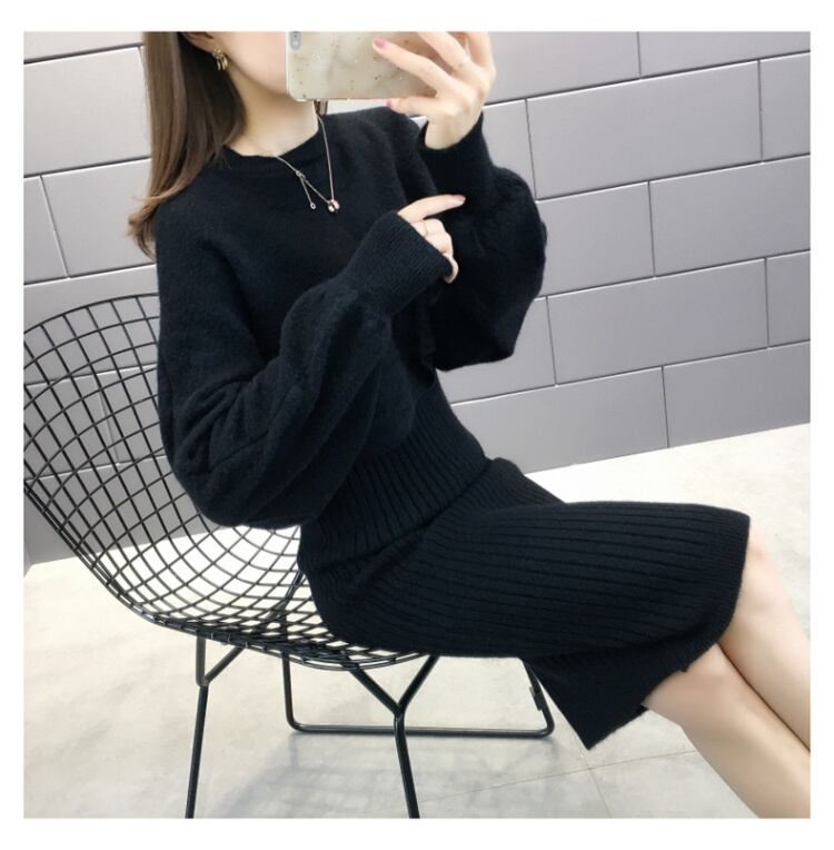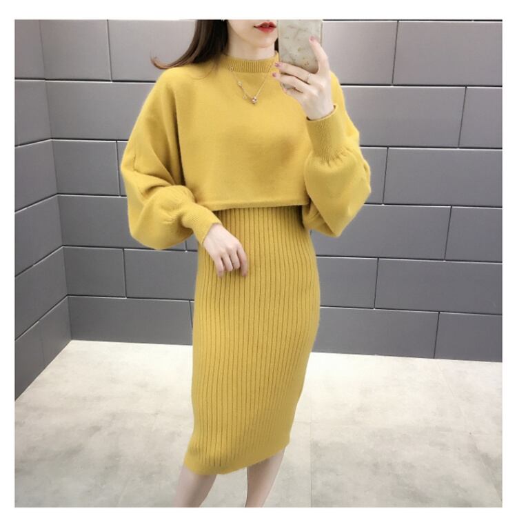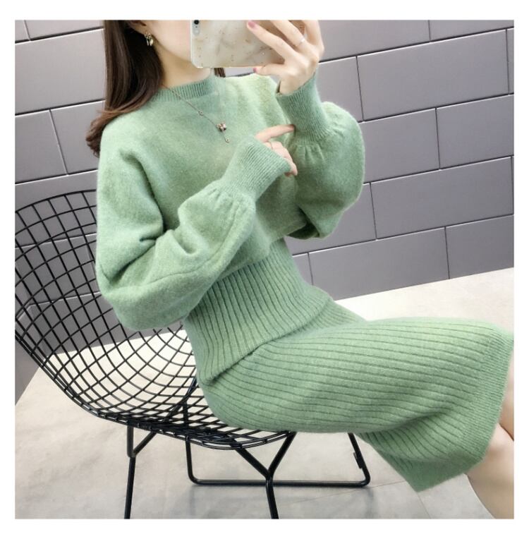 全5色 セットアップ ニット ワンピース セーター リブニット 無地 クルーネック パフスリーブ 長袖 ショート丈 Vネック ひざ丈 タイト 秋冬 お出かけ 女子会 デート カジュアル こなれ感 セクシー 上品 ガーリー きれいめ 大人可愛い