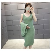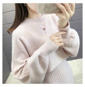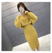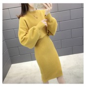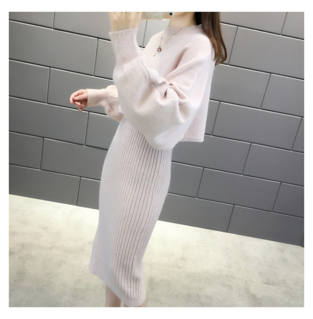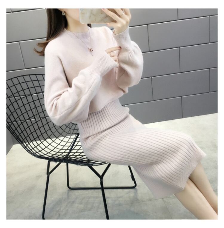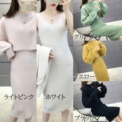 上品でガーリーなニットセーターとワンピースのセットアップです。