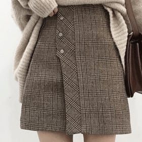 セットアップ タートルネック ニット セーター 長袖 チェック柄 ミニ丈 スカート ラップスカート ハイウエスト コーデセット 秋冬 大人可愛い ガーリー カジュアル セクシー フェミニン お出かけ デート 女子会 ベイクドカラー パステルカラー