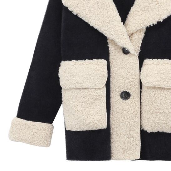 暖かさと可愛いを兼ね備えたモノトーン裏ボアジャケットです。