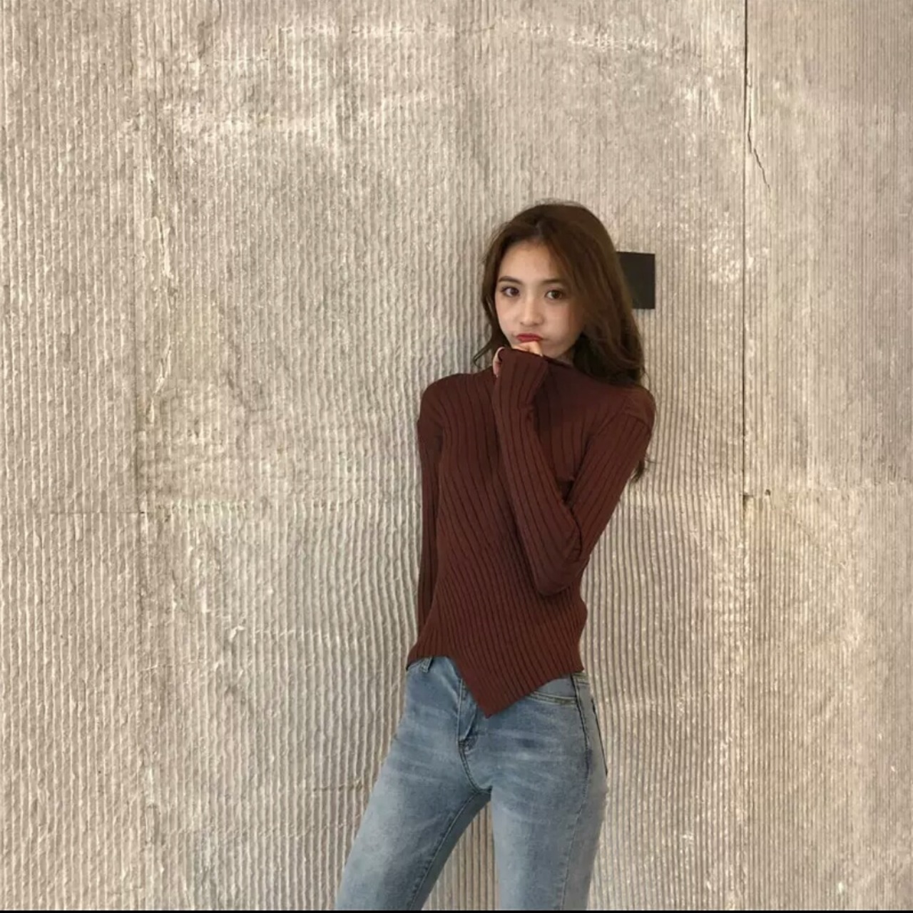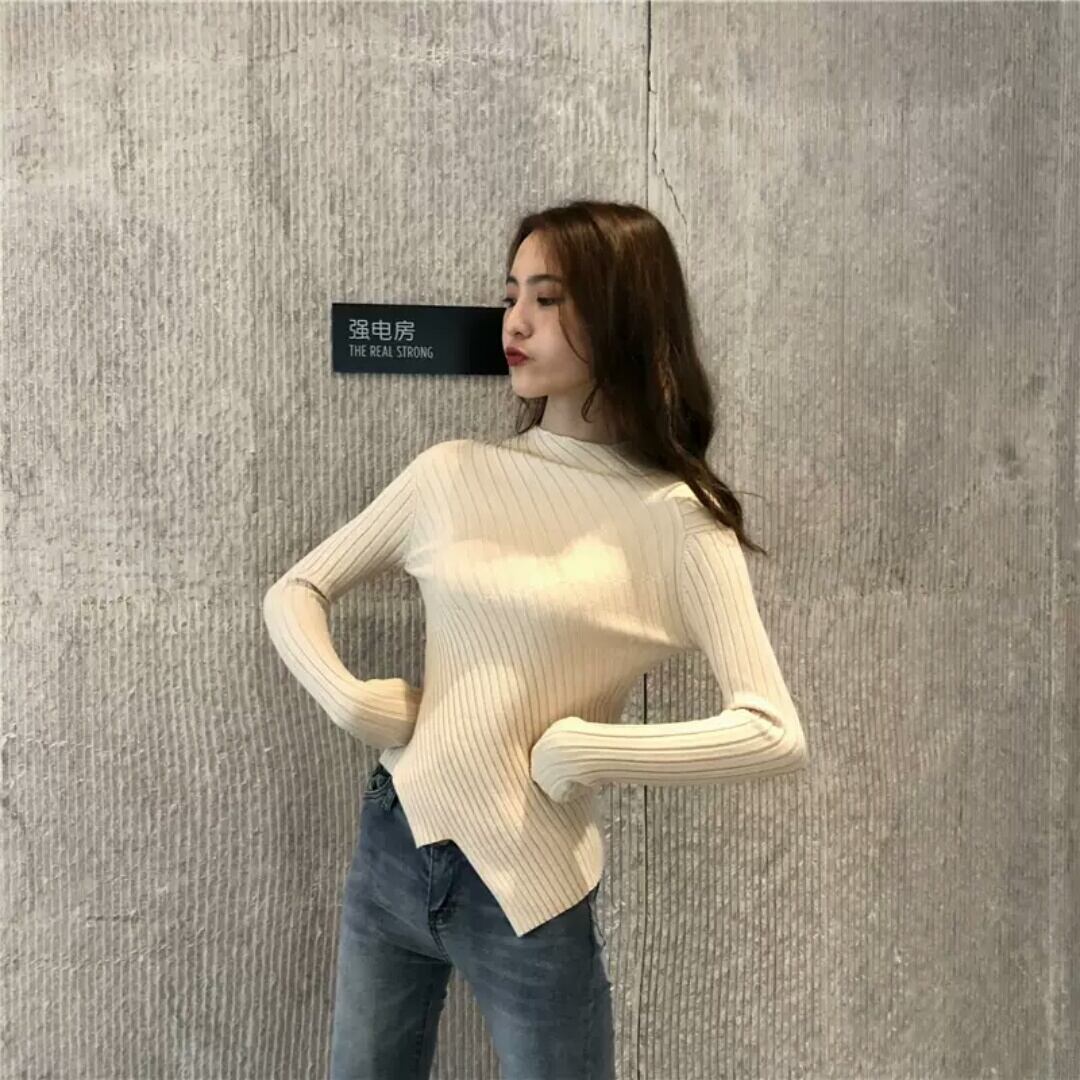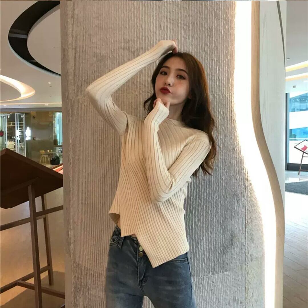 全5色 ニット セーター クロス 細見え スリム フィット 大人 キレイめ シンプル カジュアル モード系 お出かけ お買い物 デート 女子会 秋冬 春 通勤 通学 学生