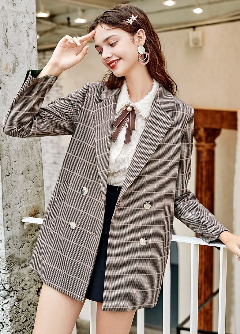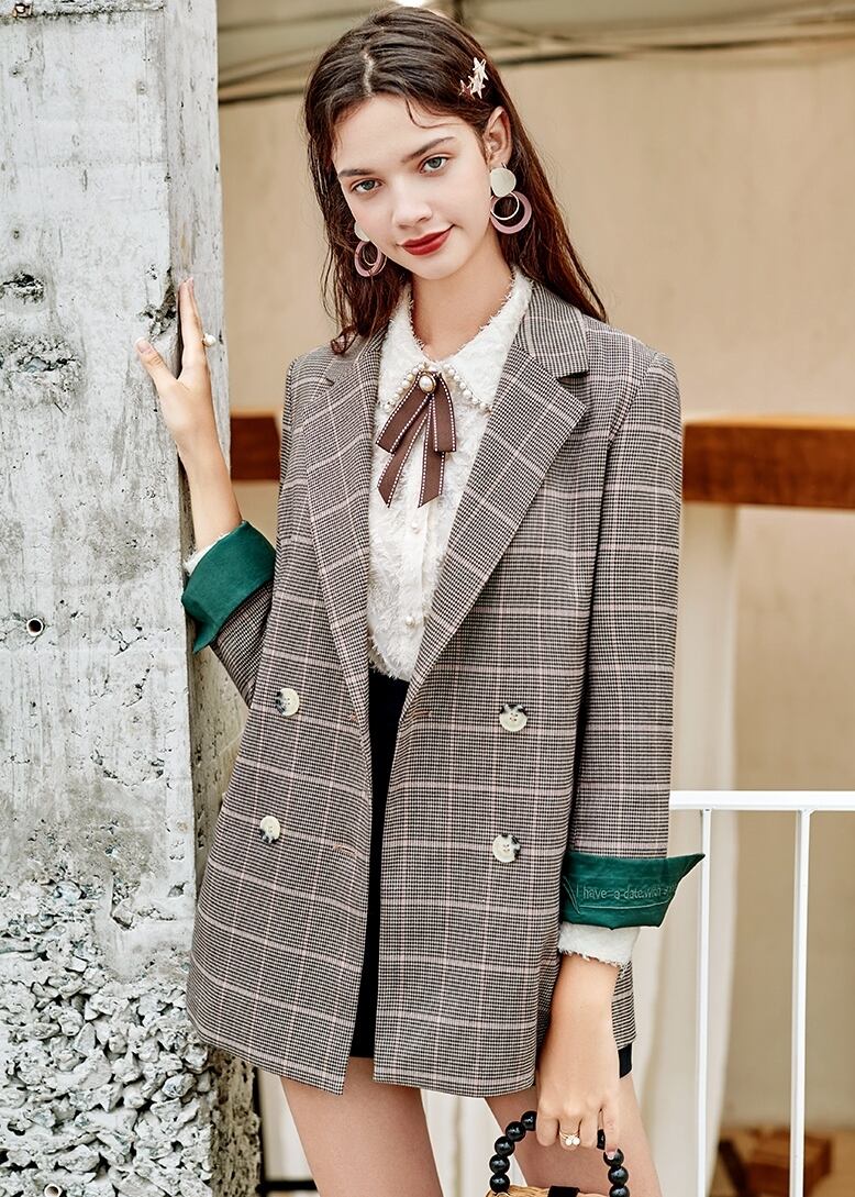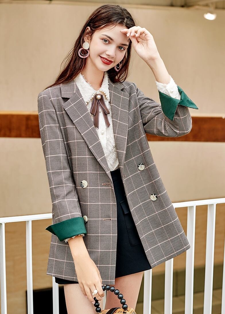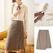 スカートはチェック柄で秋冬にピッタリ。ラップスカート風でオシャレです。