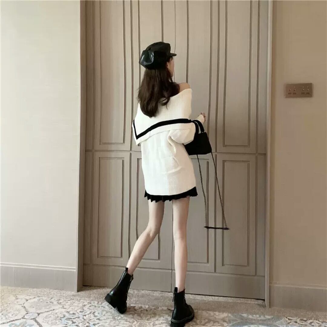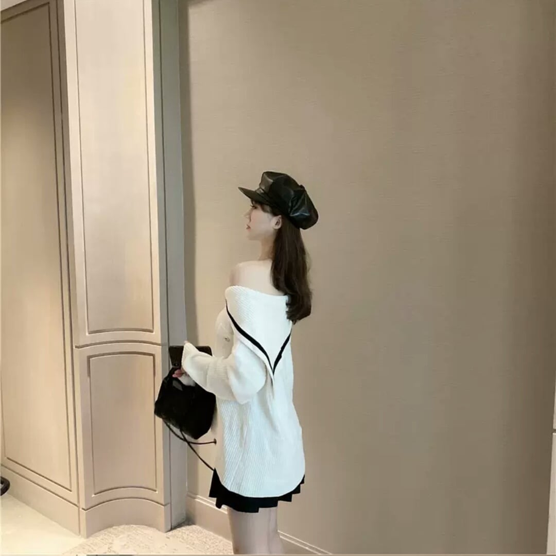 ストラップレスのワイドカラーニットプルオーバー♪