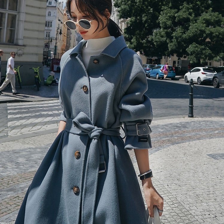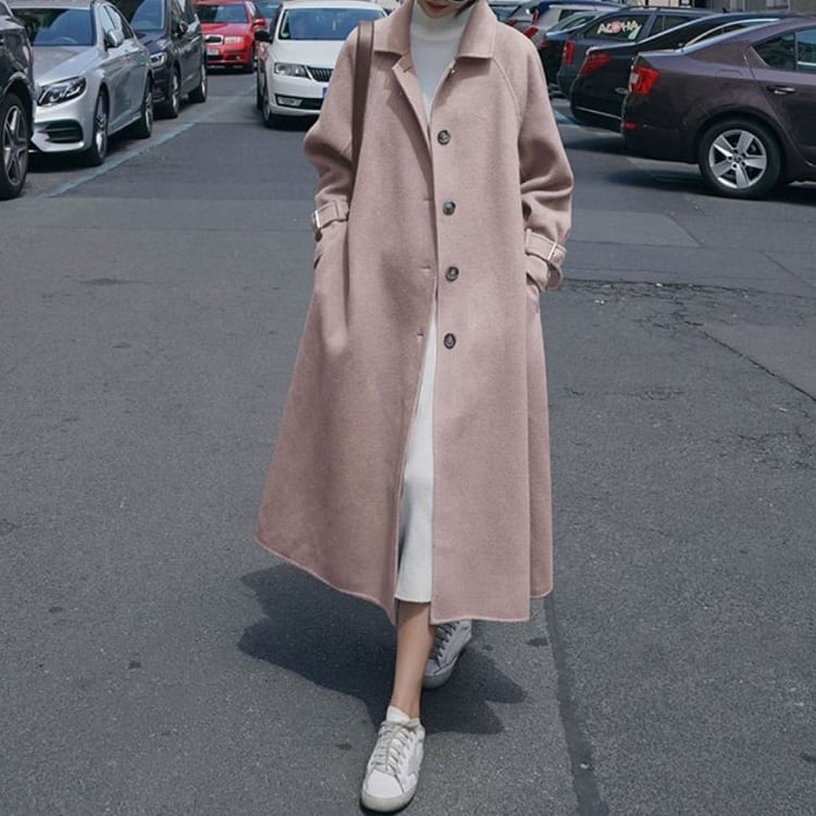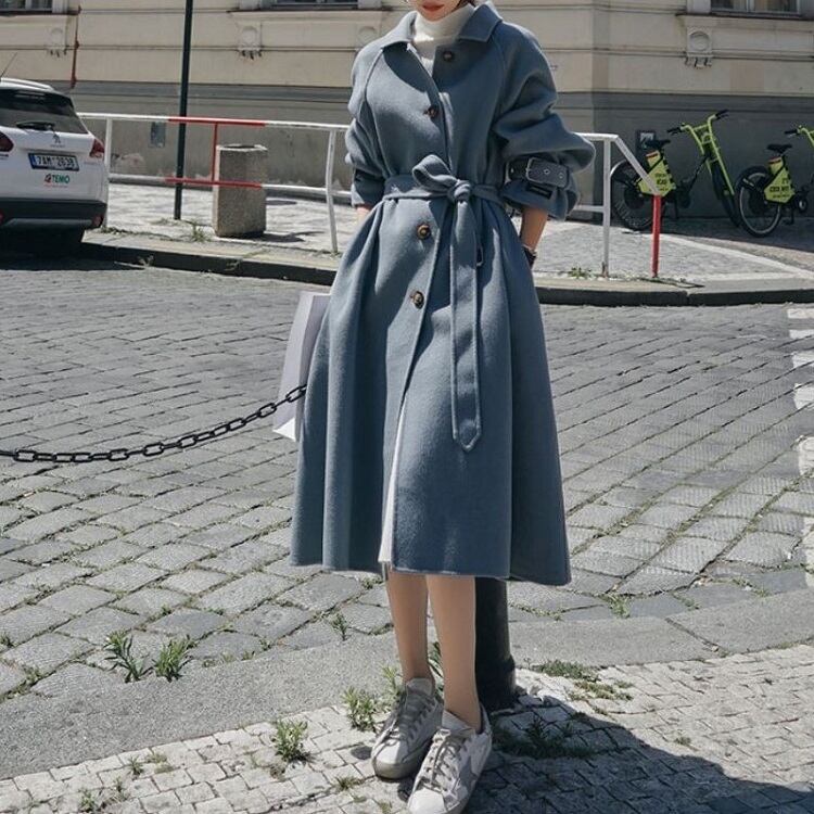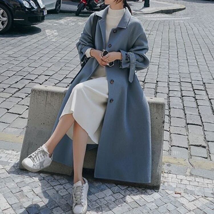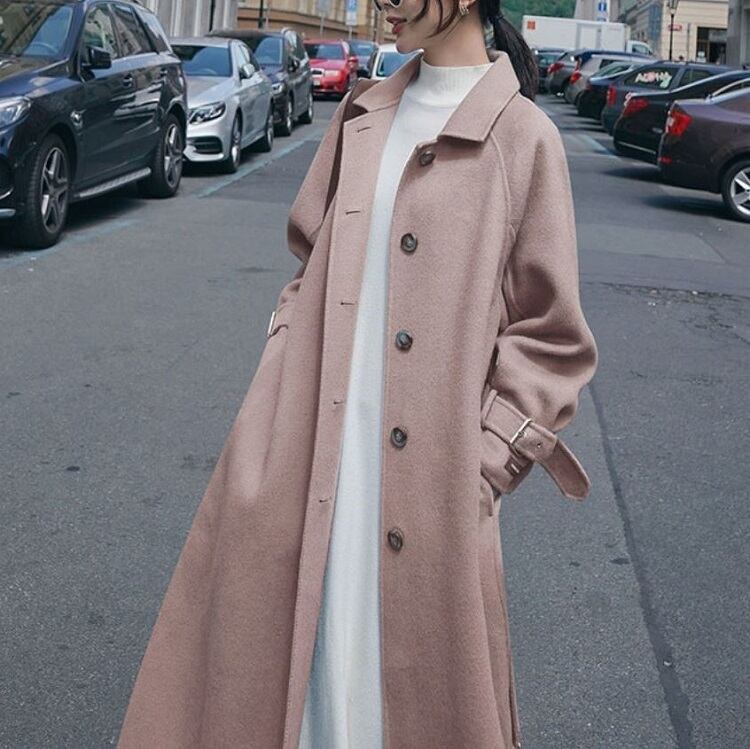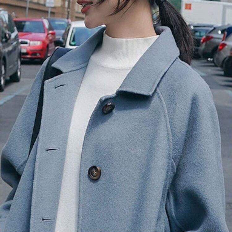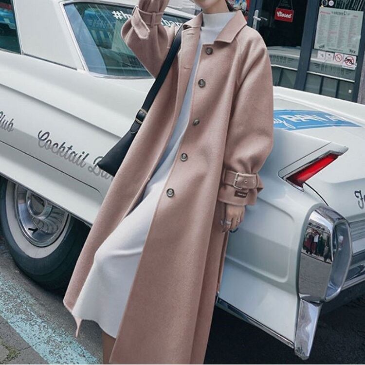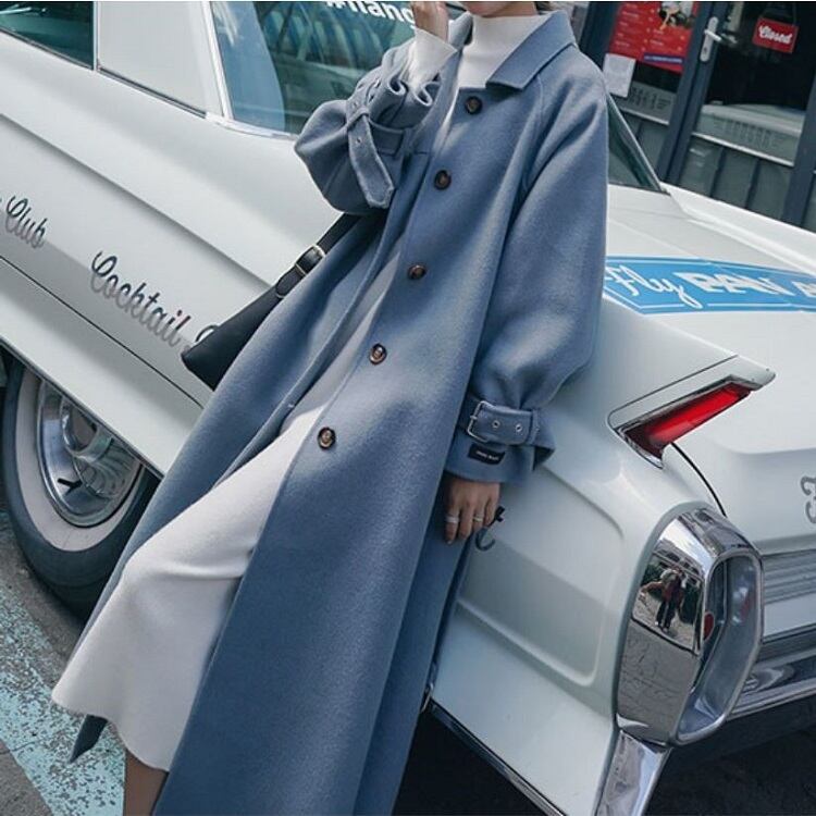 全2色 コート ウールコート ロングコート ベーシック 無地 レトロ シンプル カジュアル お出かけ デート オフィス デイリー 秋冬 ブルー ピンク