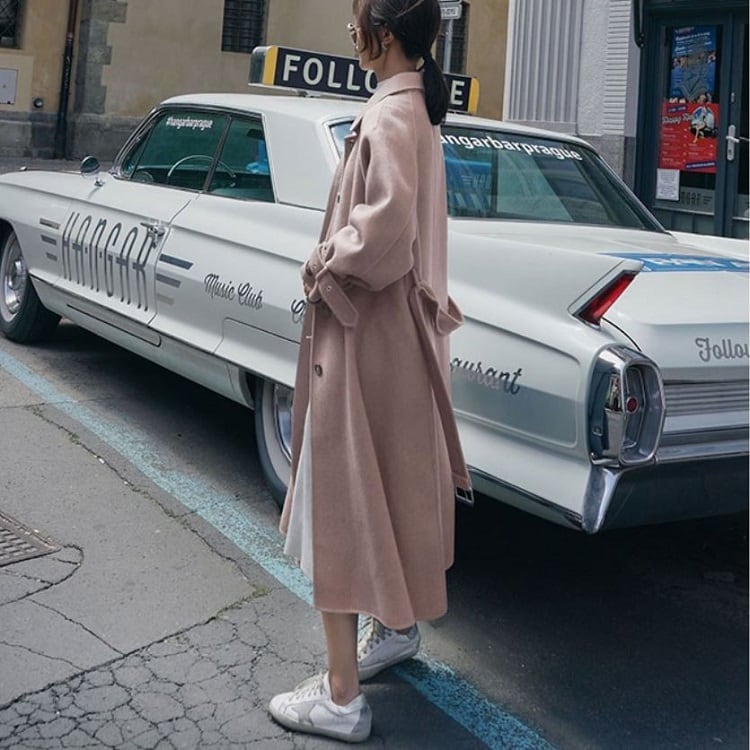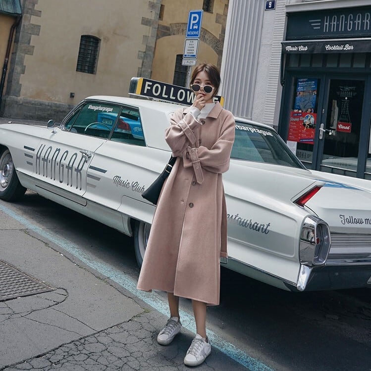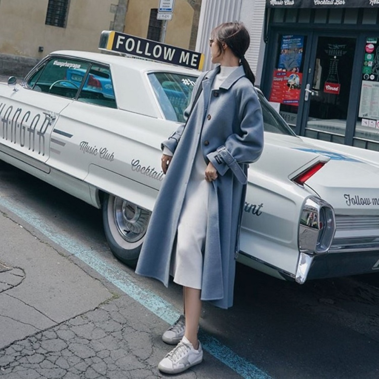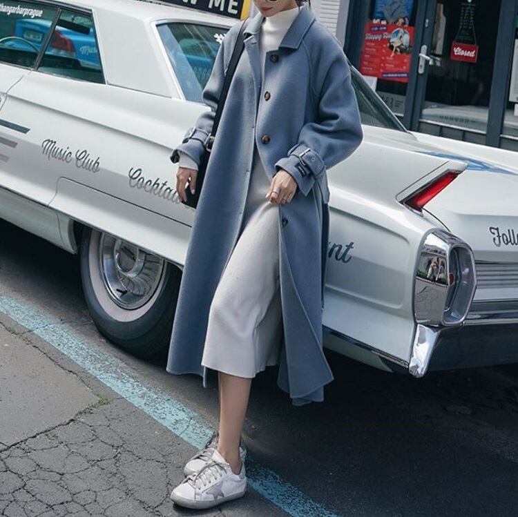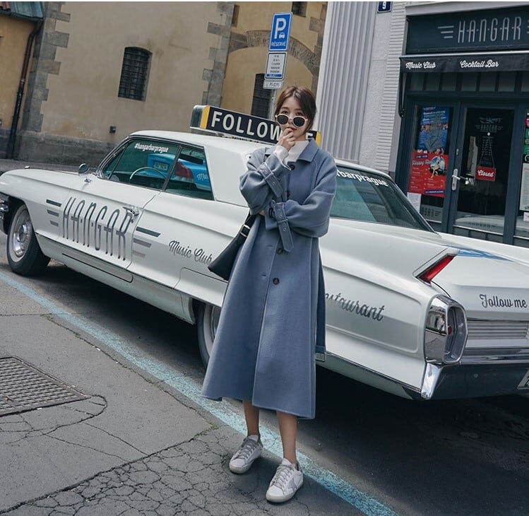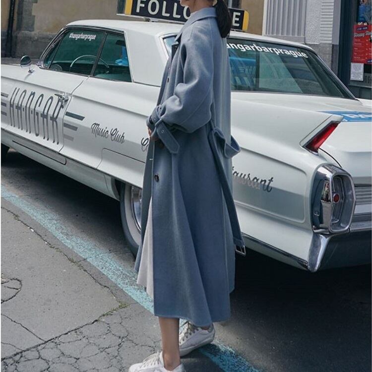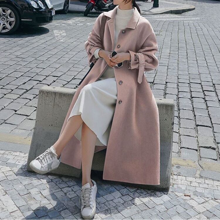 全2色 コート ウールコート ロングコート ベーシック 無地 レトロ シンプル カジュアル お出かけ デート オフィス デイリー 秋冬 ブルー ピンク