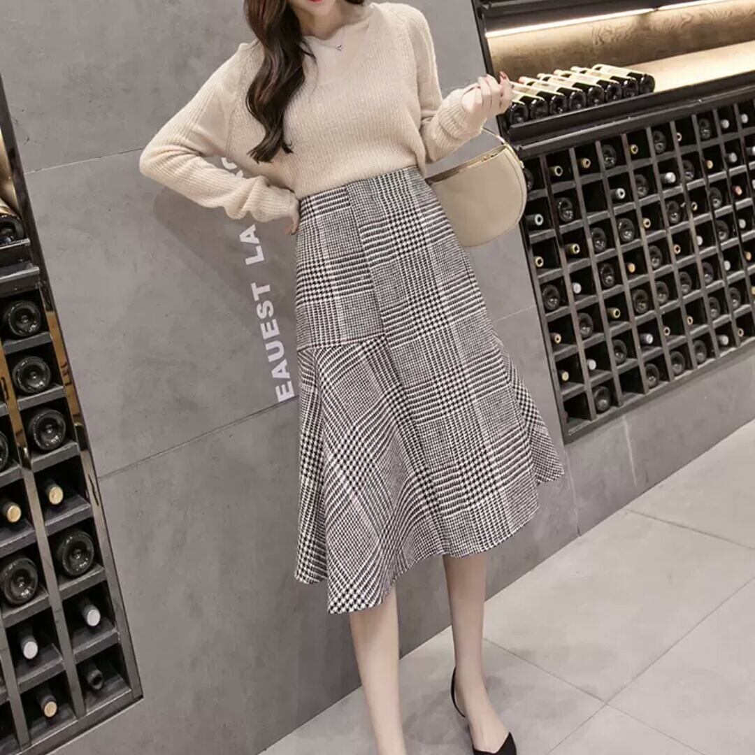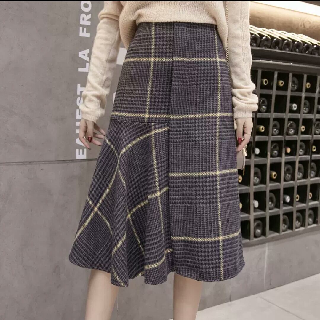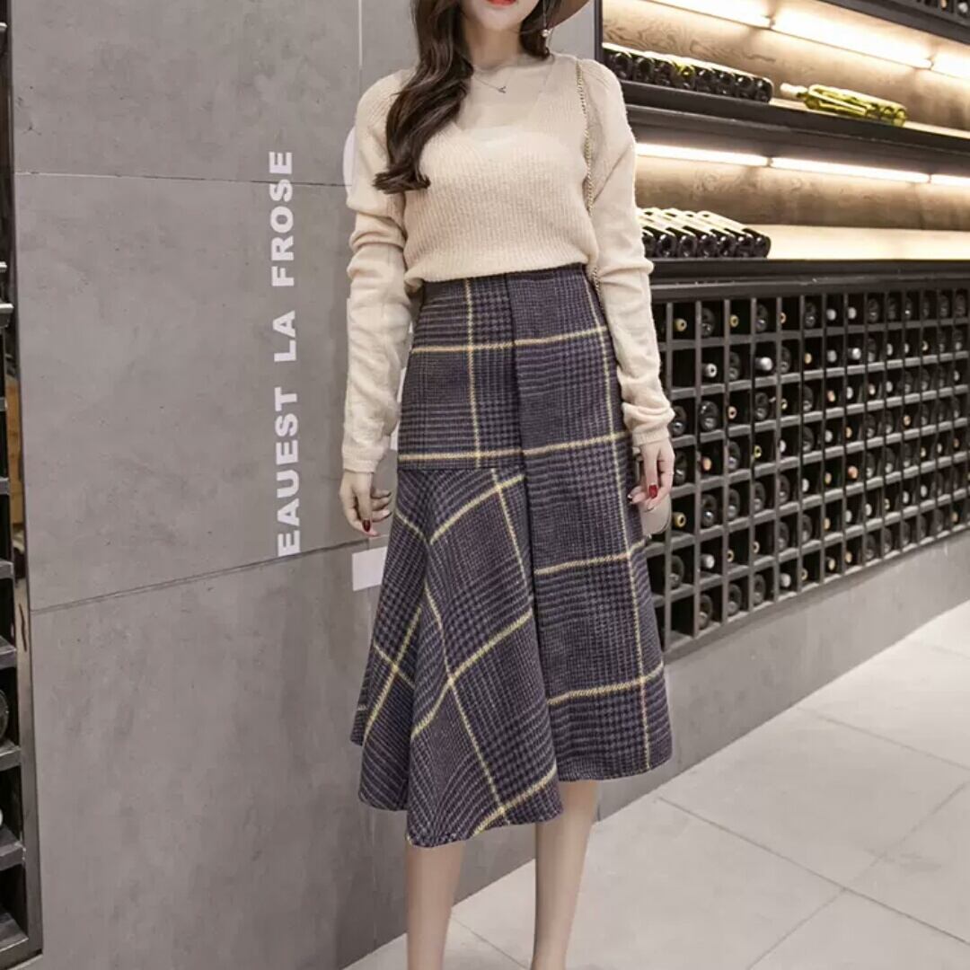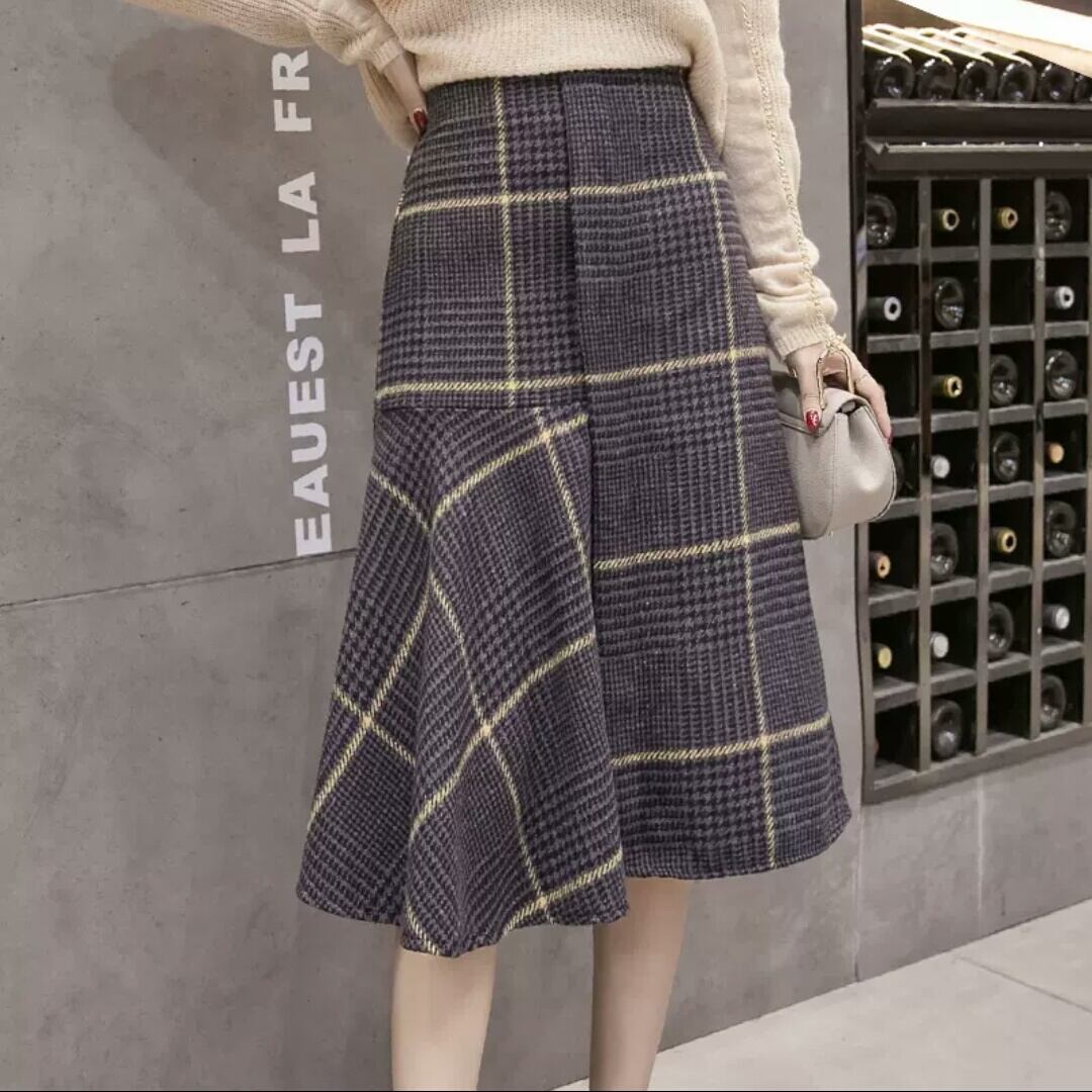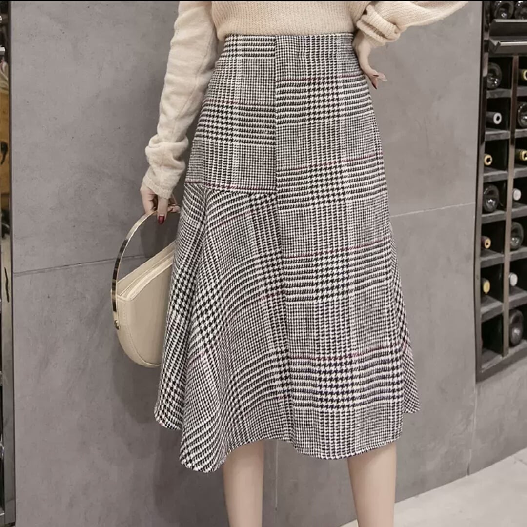 全2色 チェック柄 フレアスカート ハイウエスト 長め ミディアム丈 大人 カジュアル キレイめ 可愛い お出かけ お買い物 デート 女子会 秋冬 春 通学 通勤 学生