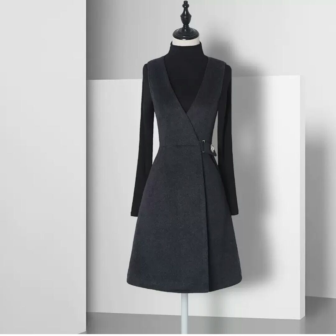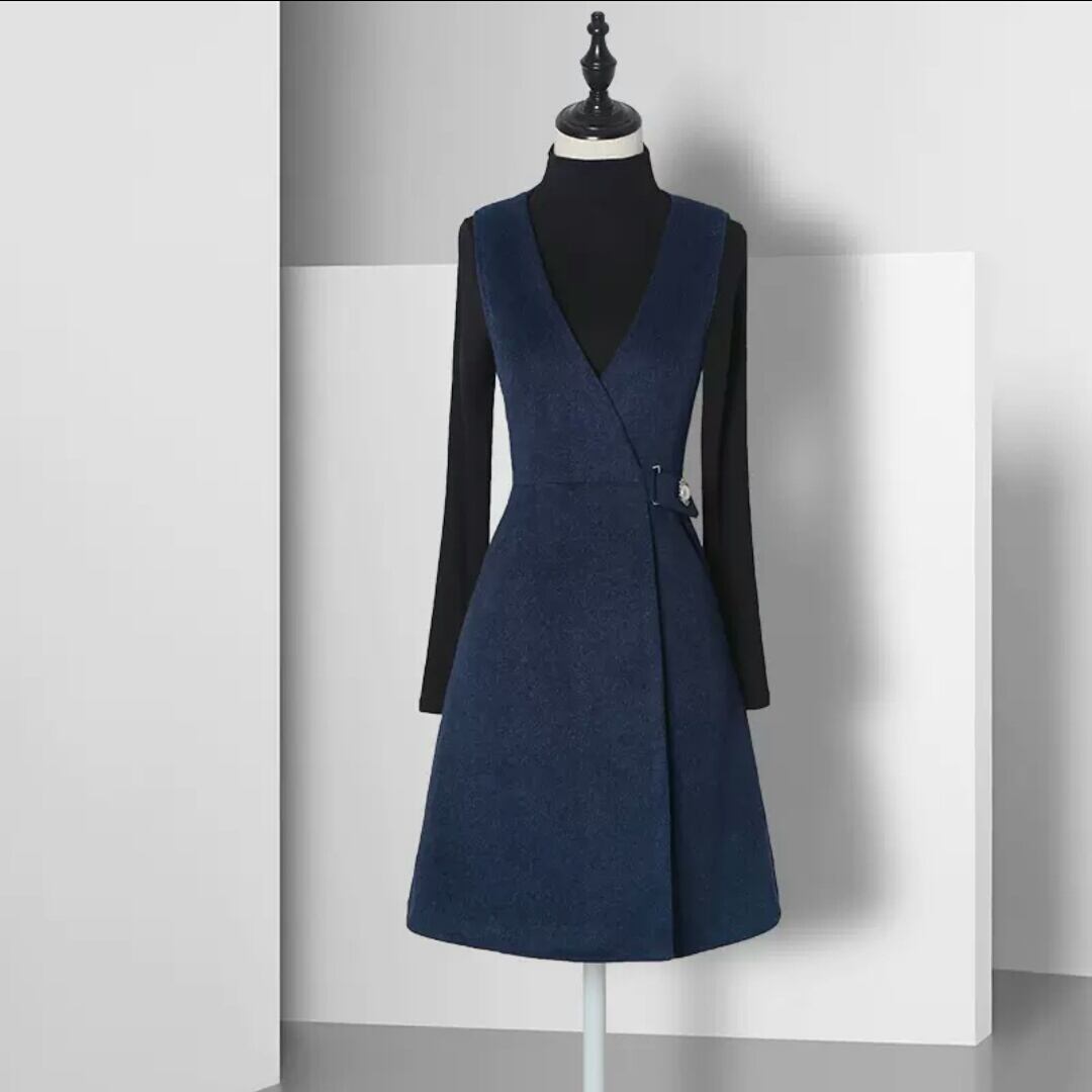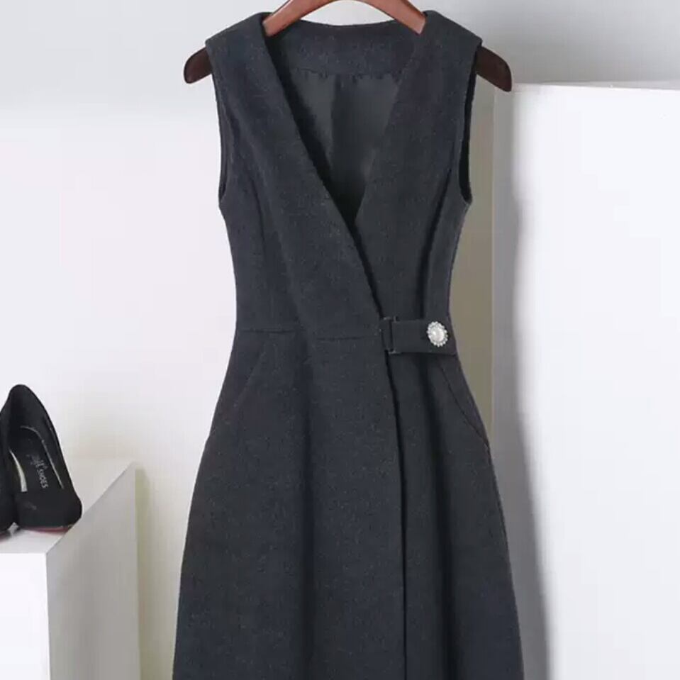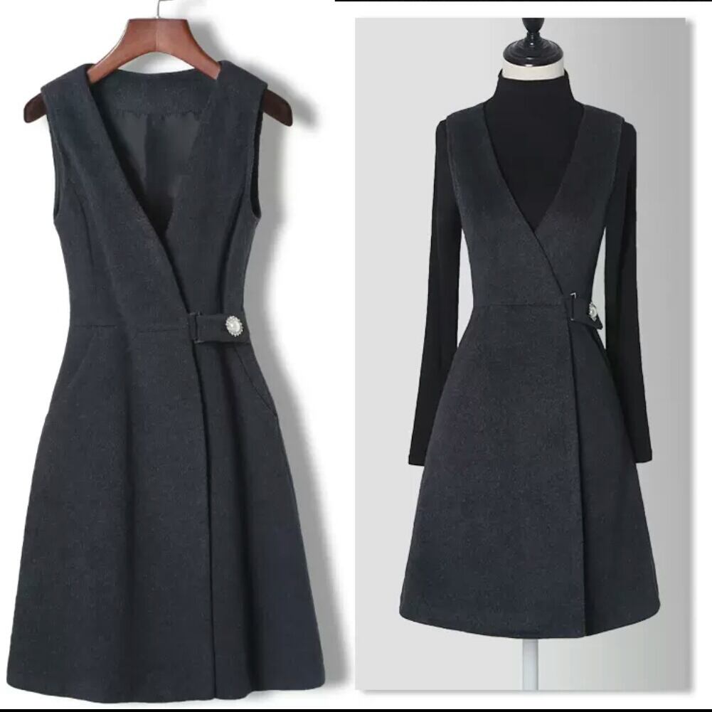 全3色 ベストワンピース 無地 シンプル 大人 キレイめ エレガント お出かけ お買い物 デート 女子会 秋冬 春 通学 通勤 学生