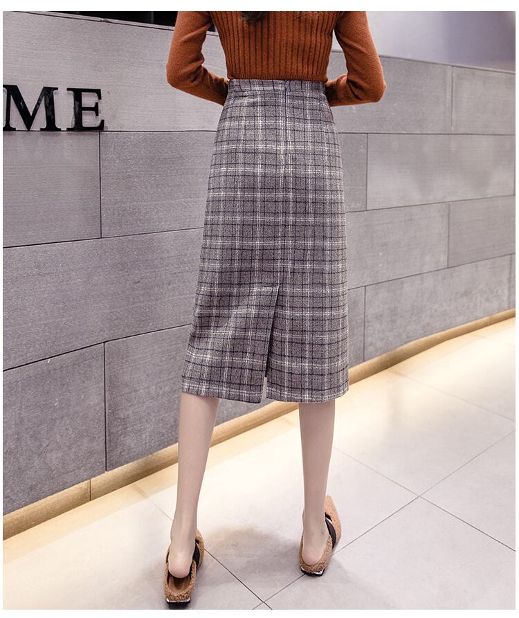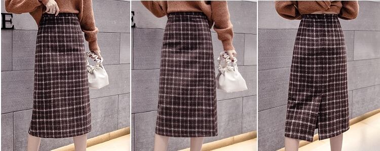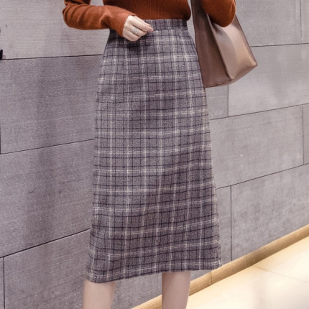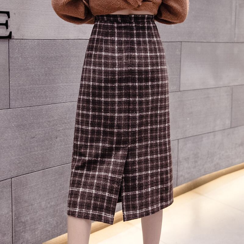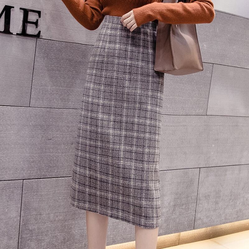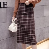 チェック柄 タイトスカート ハイウエスト ひざ下丈 ベイクドカラー スリット 秋冬 カジュアル お出かけ 女子会 デート 上品 大人可愛い フェミニン ガーリー エレガント ウール くすみカラー