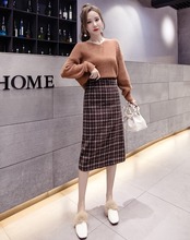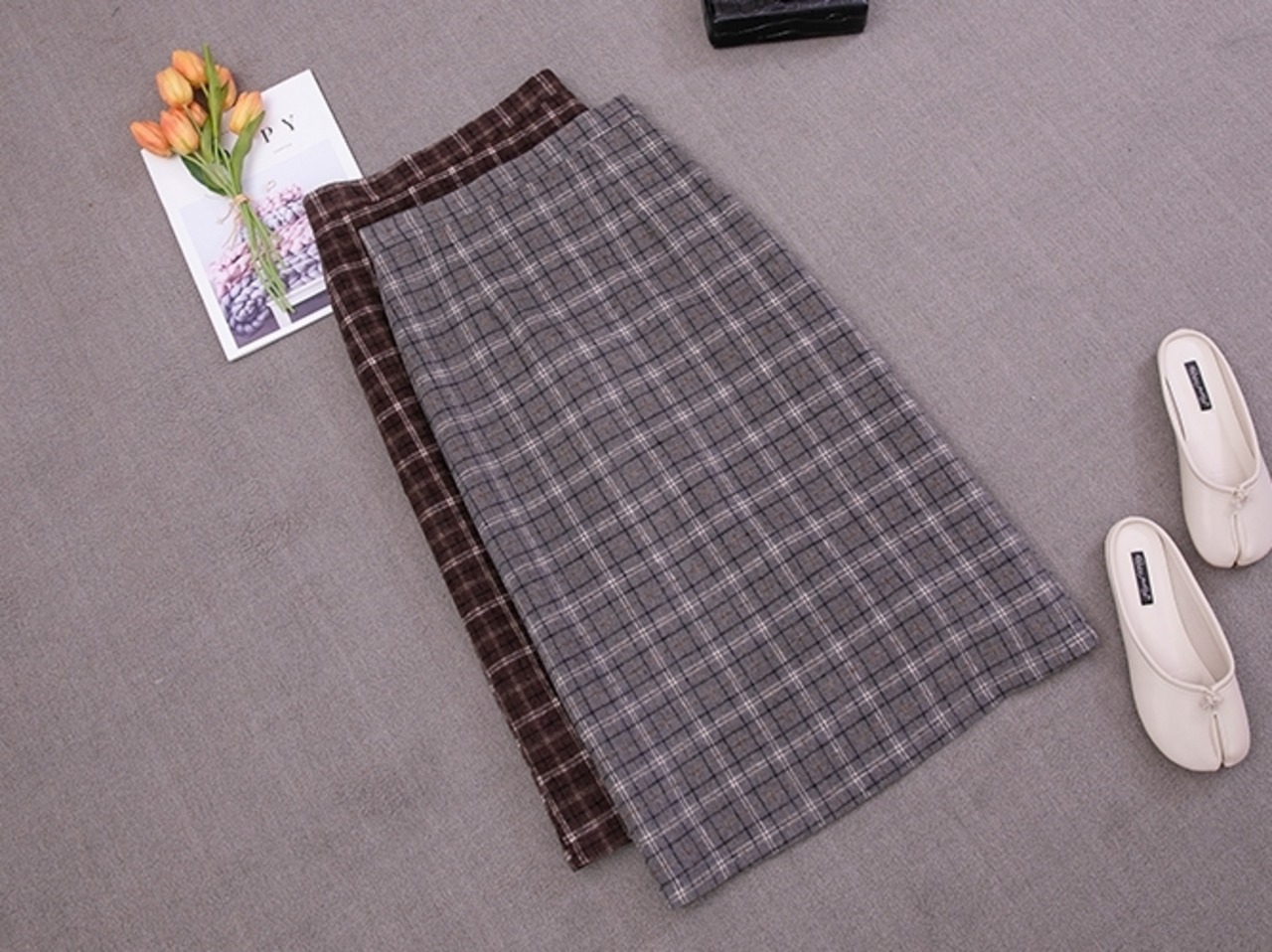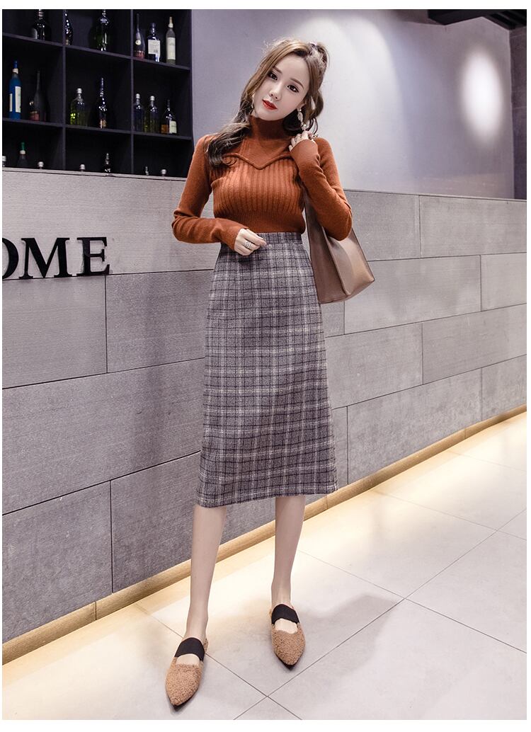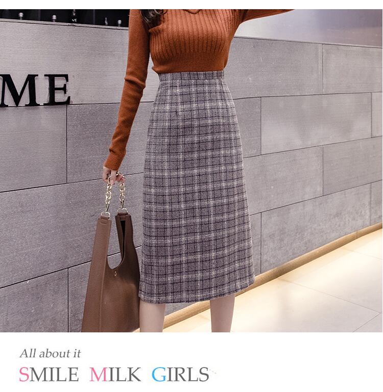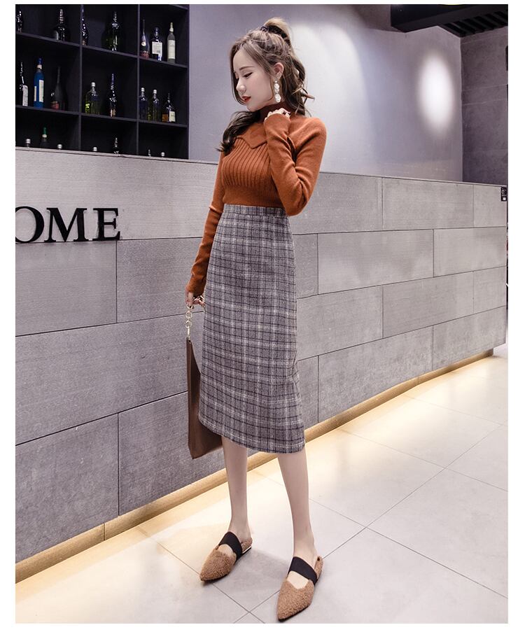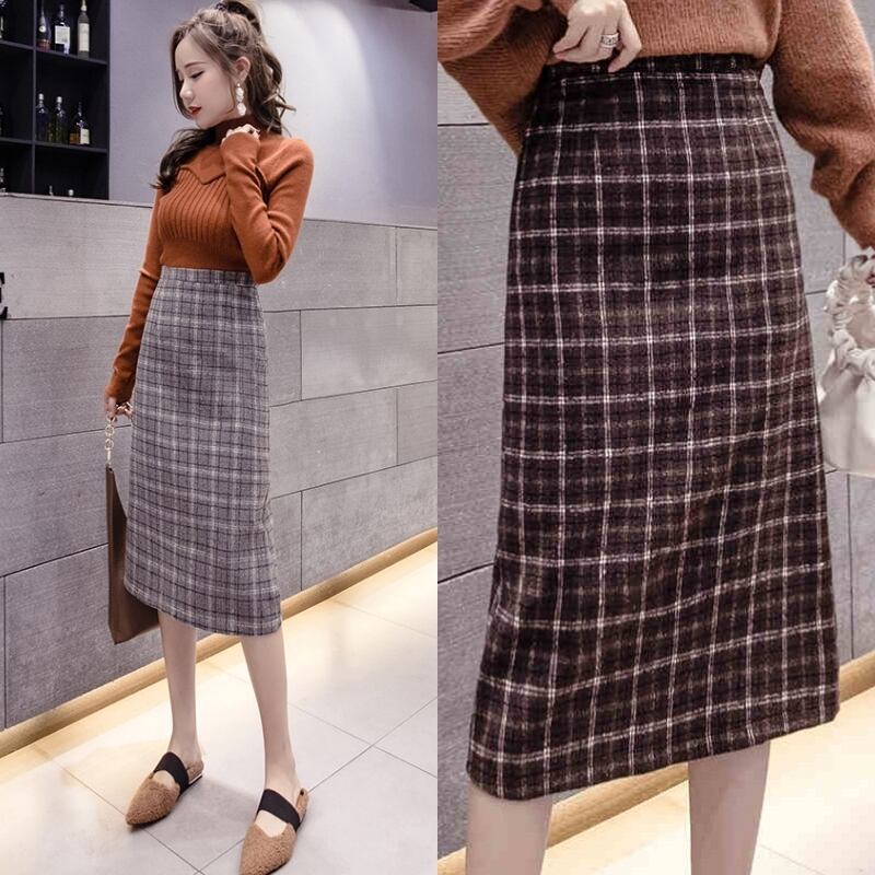 チェック柄 タイトスカート ハイウエスト ひざ下丈 ベイクドカラー スリット 秋冬 カジュアル お出かけ 女子会 デート 上品 大人可愛い フェミニン ガーリー エレガント ウール くすみカラー