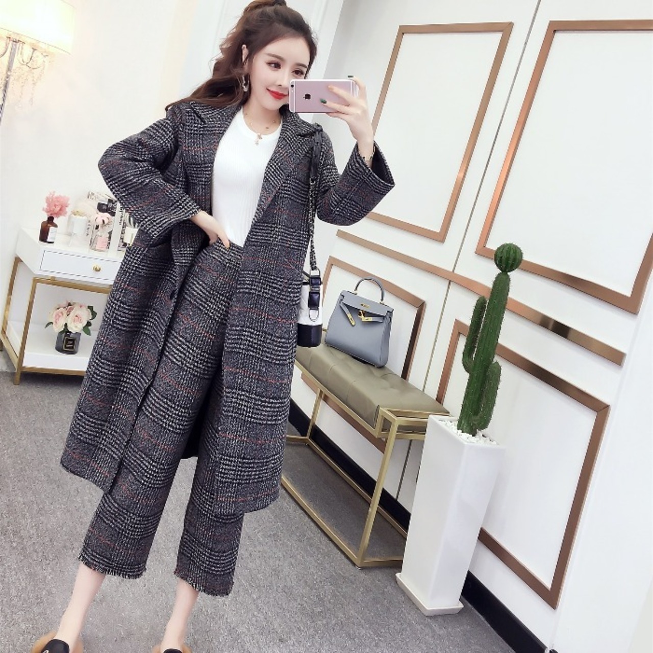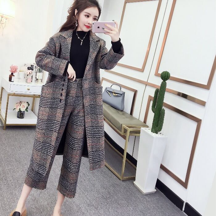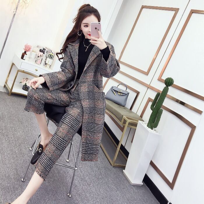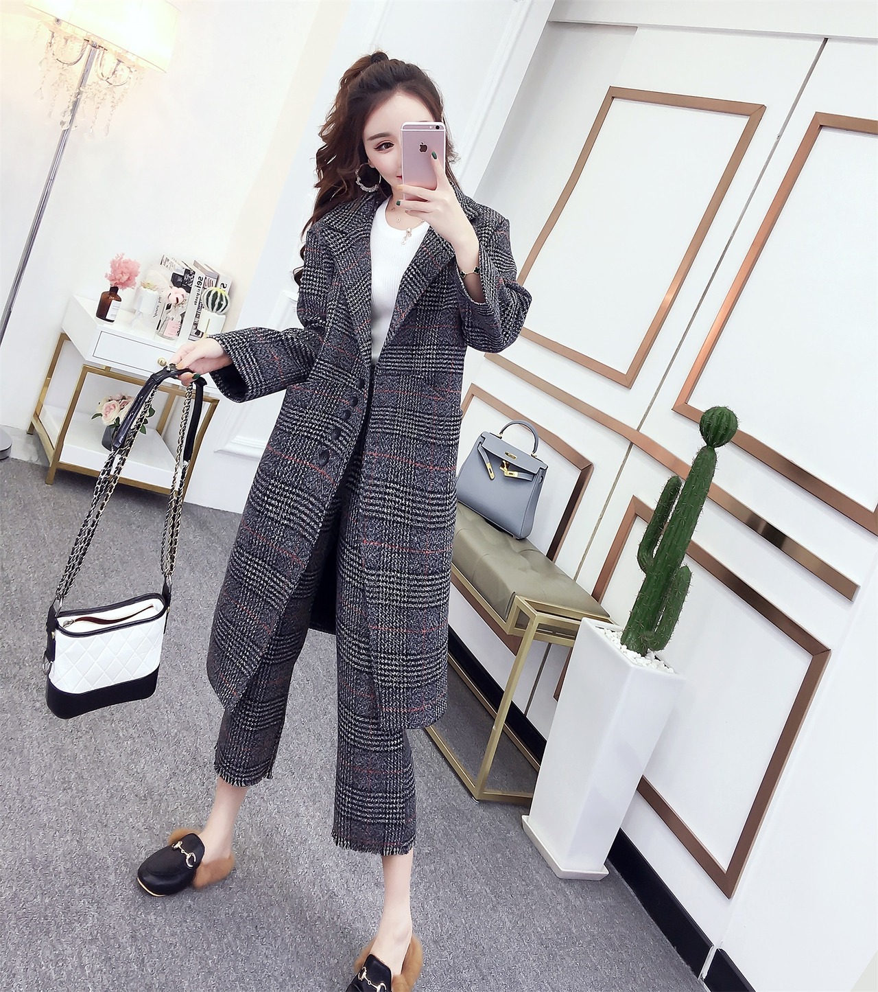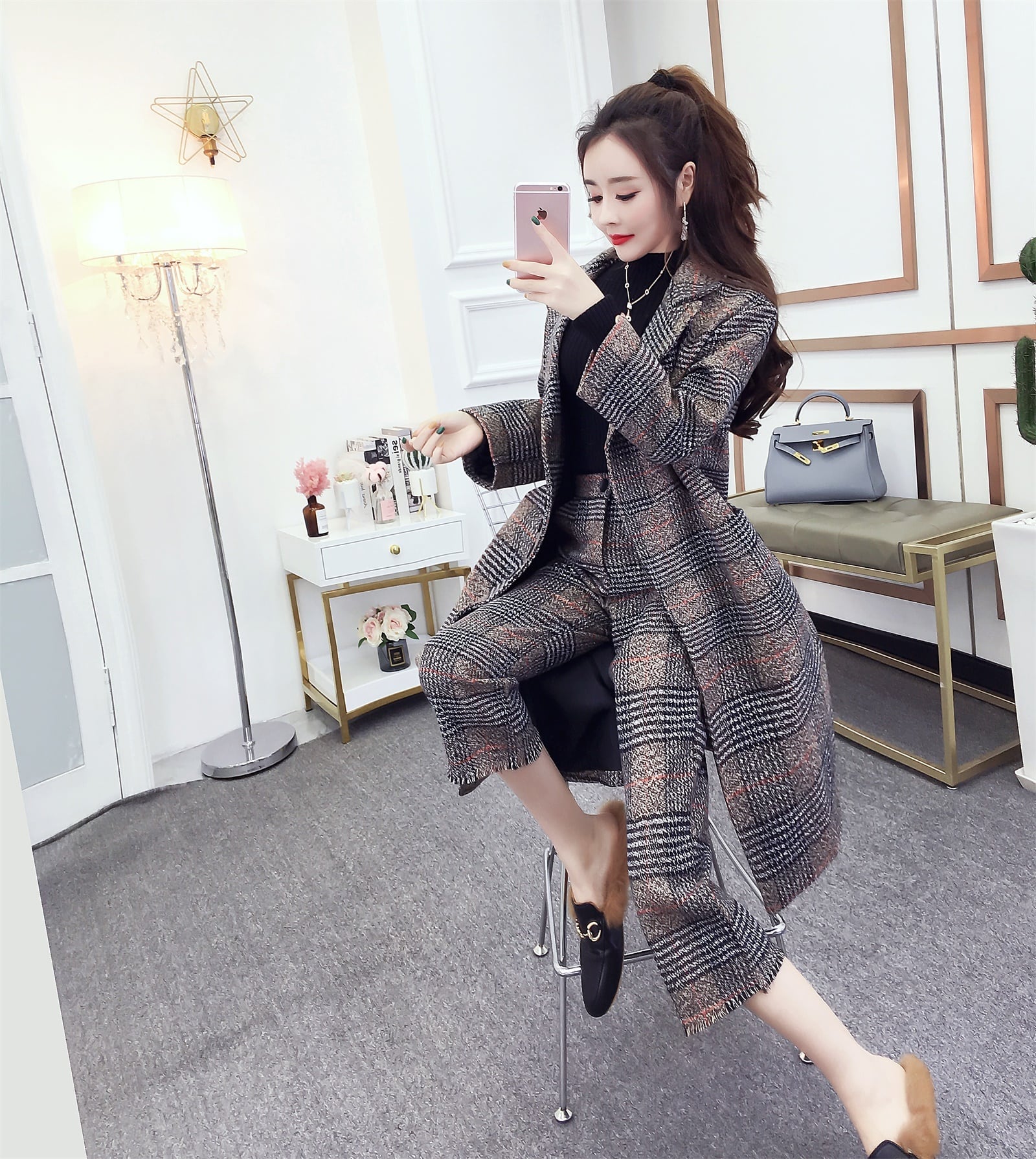 全2色 セットアップ ツーピース ジャケット コート アウター パンツ ワイドパンツ ハイウエスト チェック 7部丈 おしゃれ かっこいい キレイ オフィス お出かけ お呼ばれ デート 秋 冬