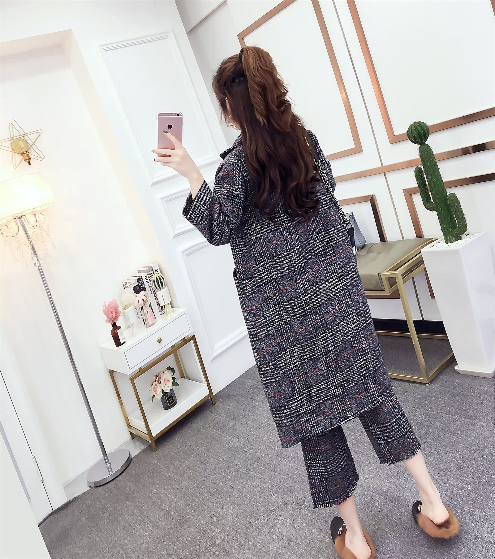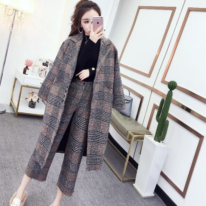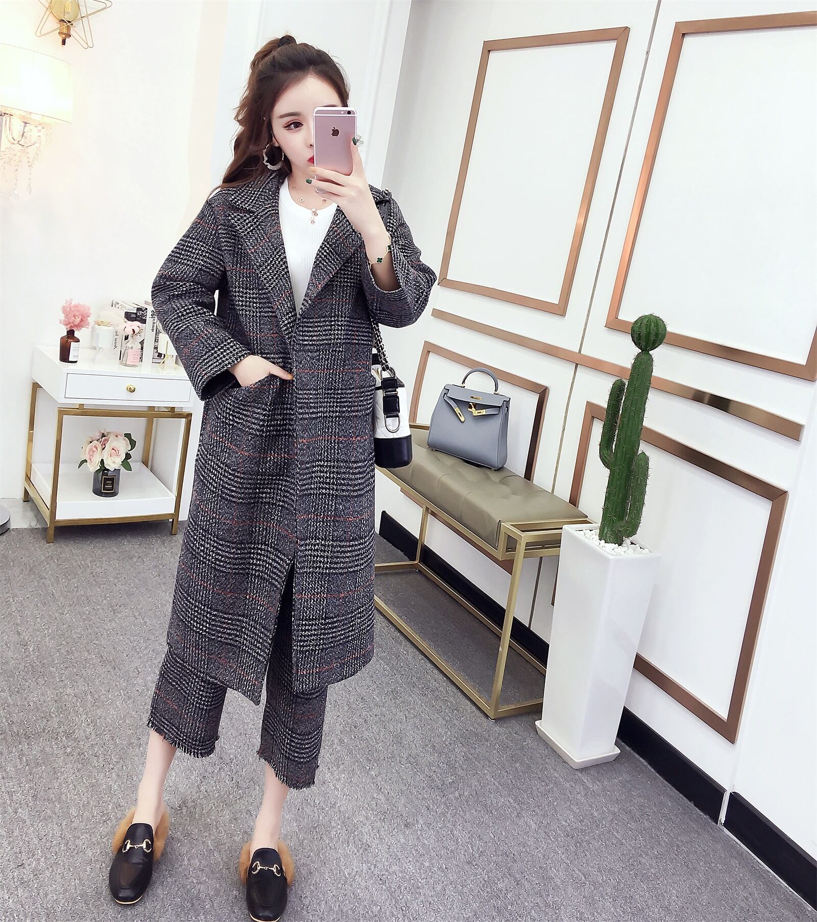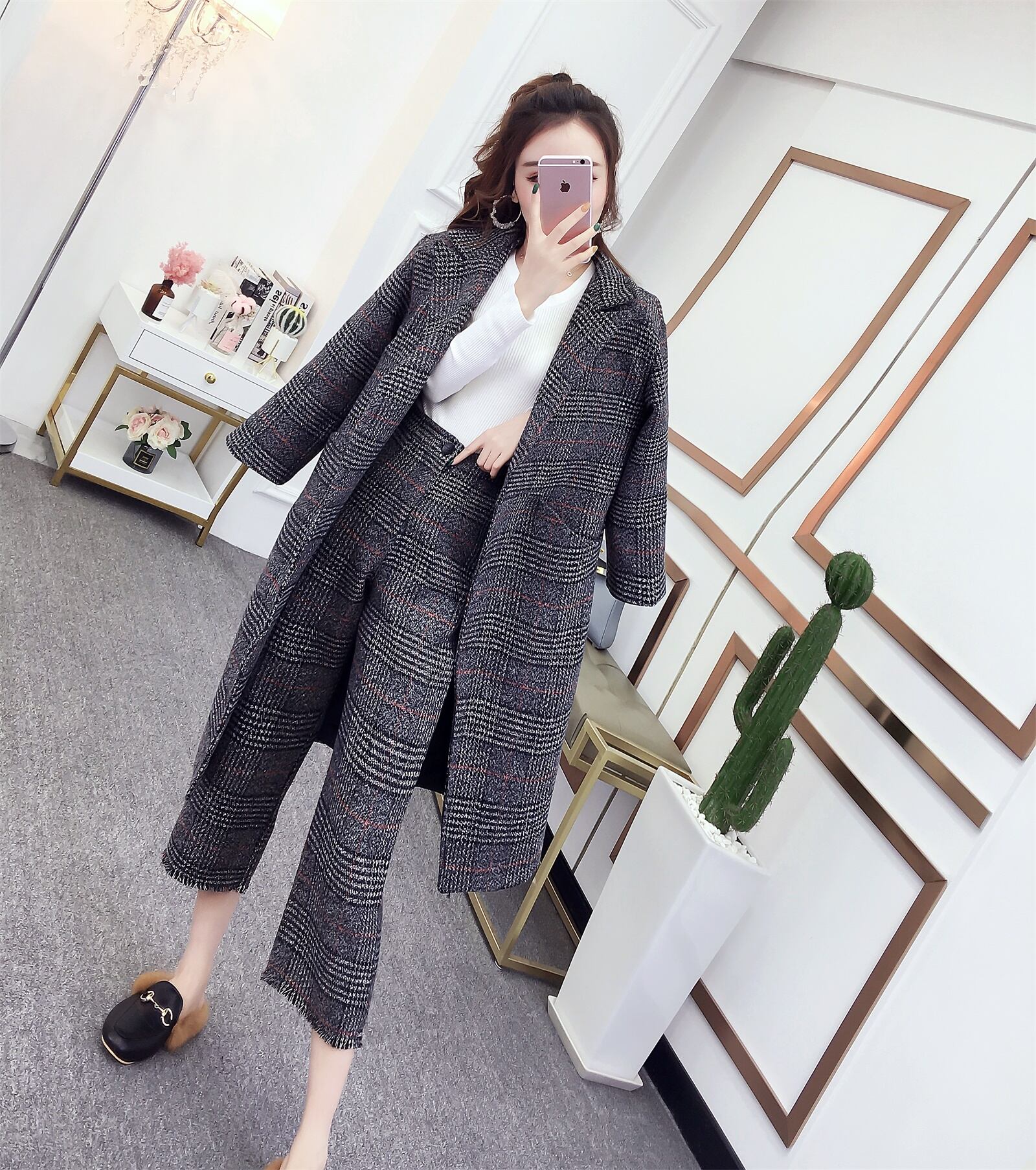 全2色 セットアップ ツーピース ジャケット コート アウター パンツ ワイドパンツ ハイウエスト チェック 7部丈 おしゃれ かっこいい キレイ オフィス お出かけ お呼ばれ デート 秋 冬