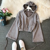 全4色 トップス パーカー ウエスト絞り フード付き 秋冬 お出かけ デート 女子会 カジュアル 大人可愛い フェミニン ガーリー 長袖