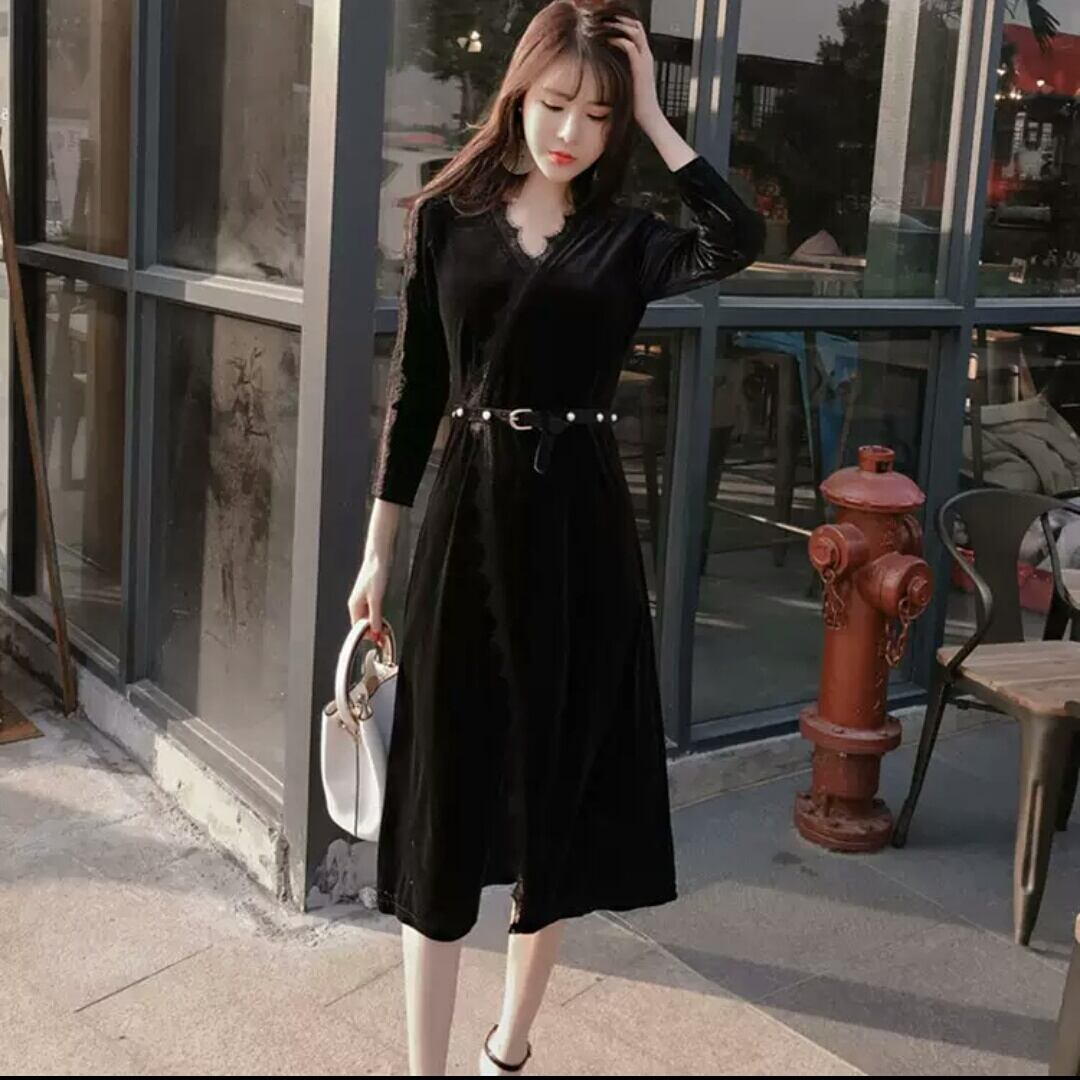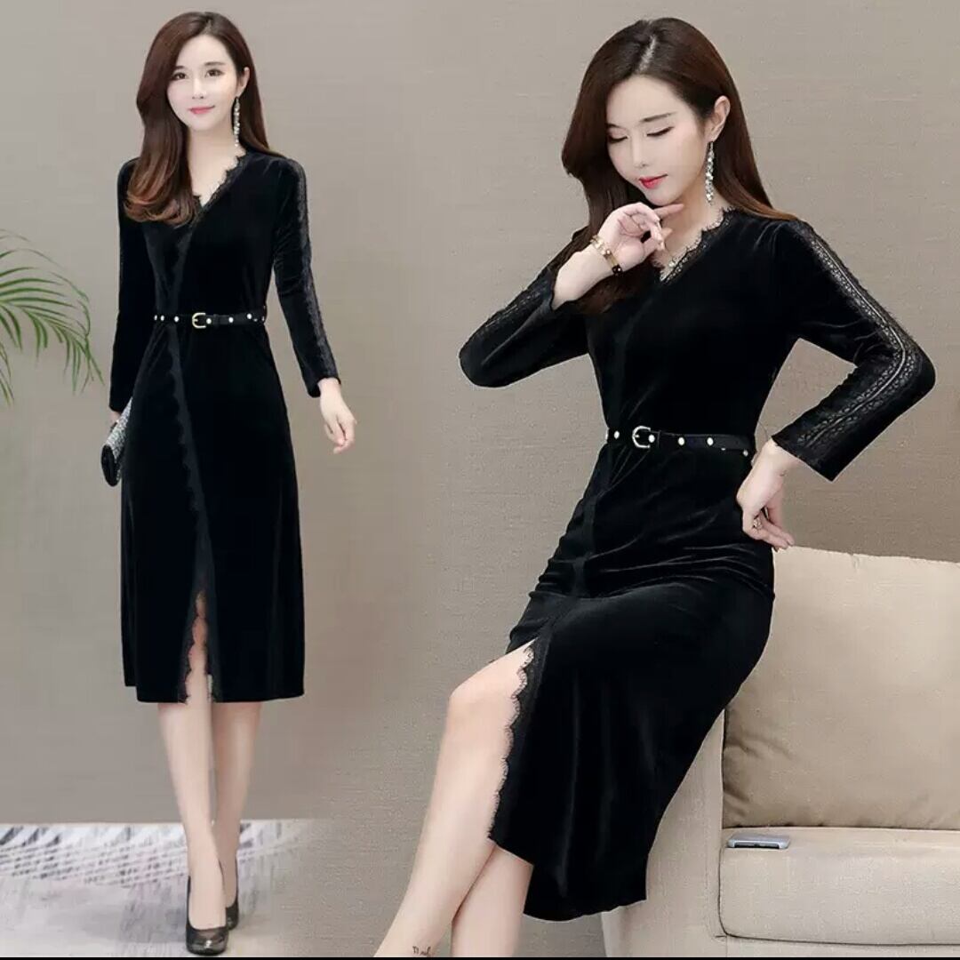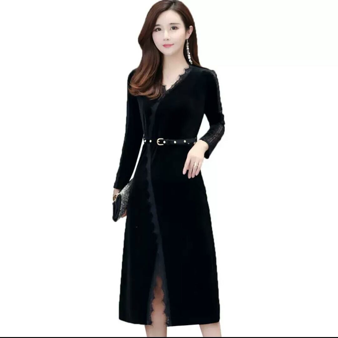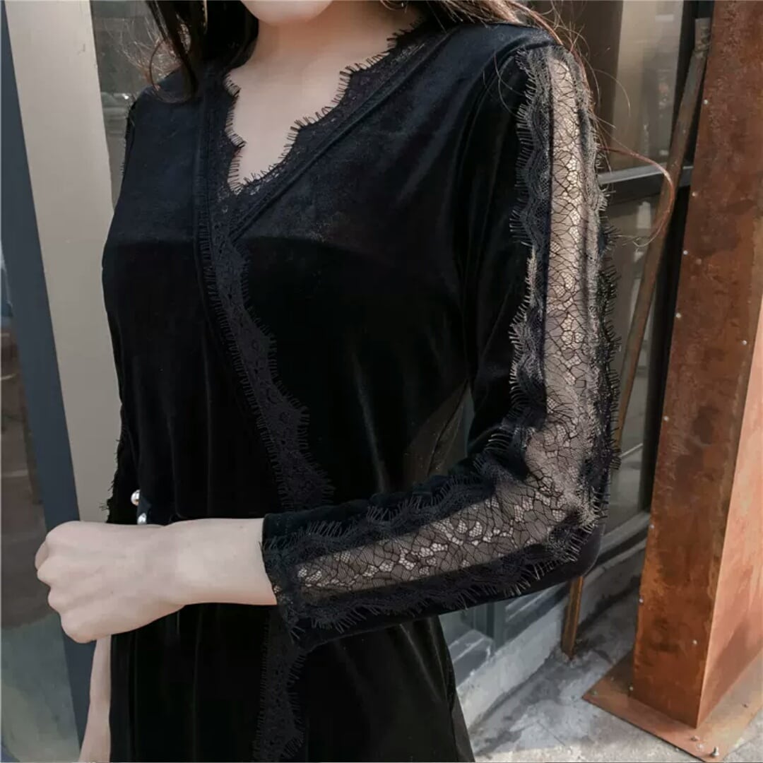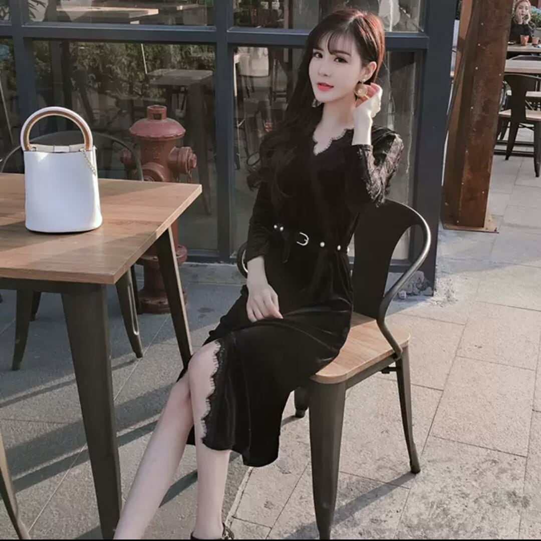 レース ワンピース ひざ丈 ミディアム丈 ベルト 黒 ブラック 大人 エレガント キレイめ セクシー お出かけ お買い物 デート 女子会 秋冬 春 パーティー