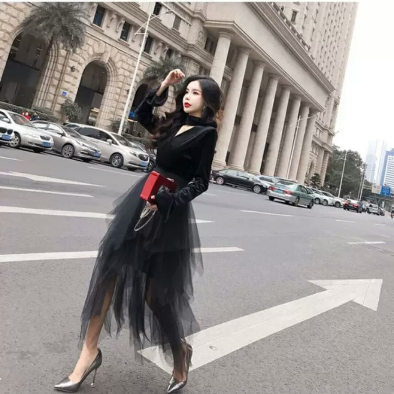 足元がオーガンジーから透けるデザインがおしゃれさ抜群!