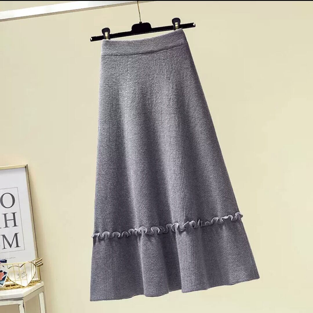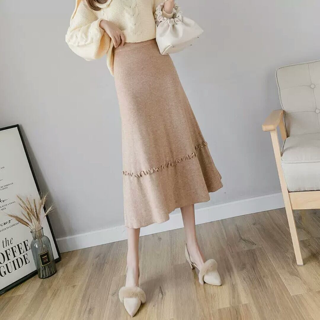全5色 ニット スカート ミモレ丈 お出かけ お買い物 デート 女子会 大人 カジュアル キレイめ 可愛い 秋冬 春 通学 学生 通勤