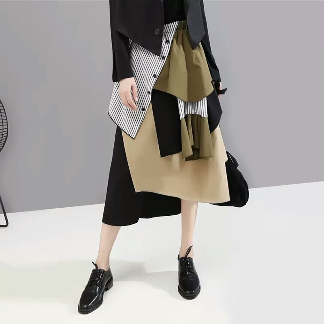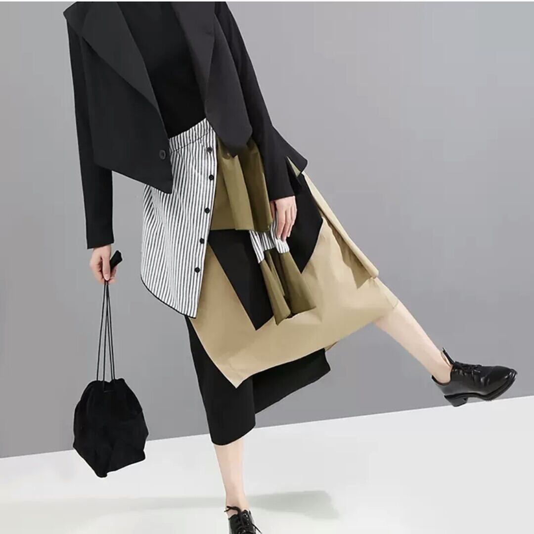 ステッチ風 ミディアム丈 スカート 個性的 大人 カジュアル 学生 通勤 通学 キレイめ お買い物 お出かけ デート 女子会 秋冬