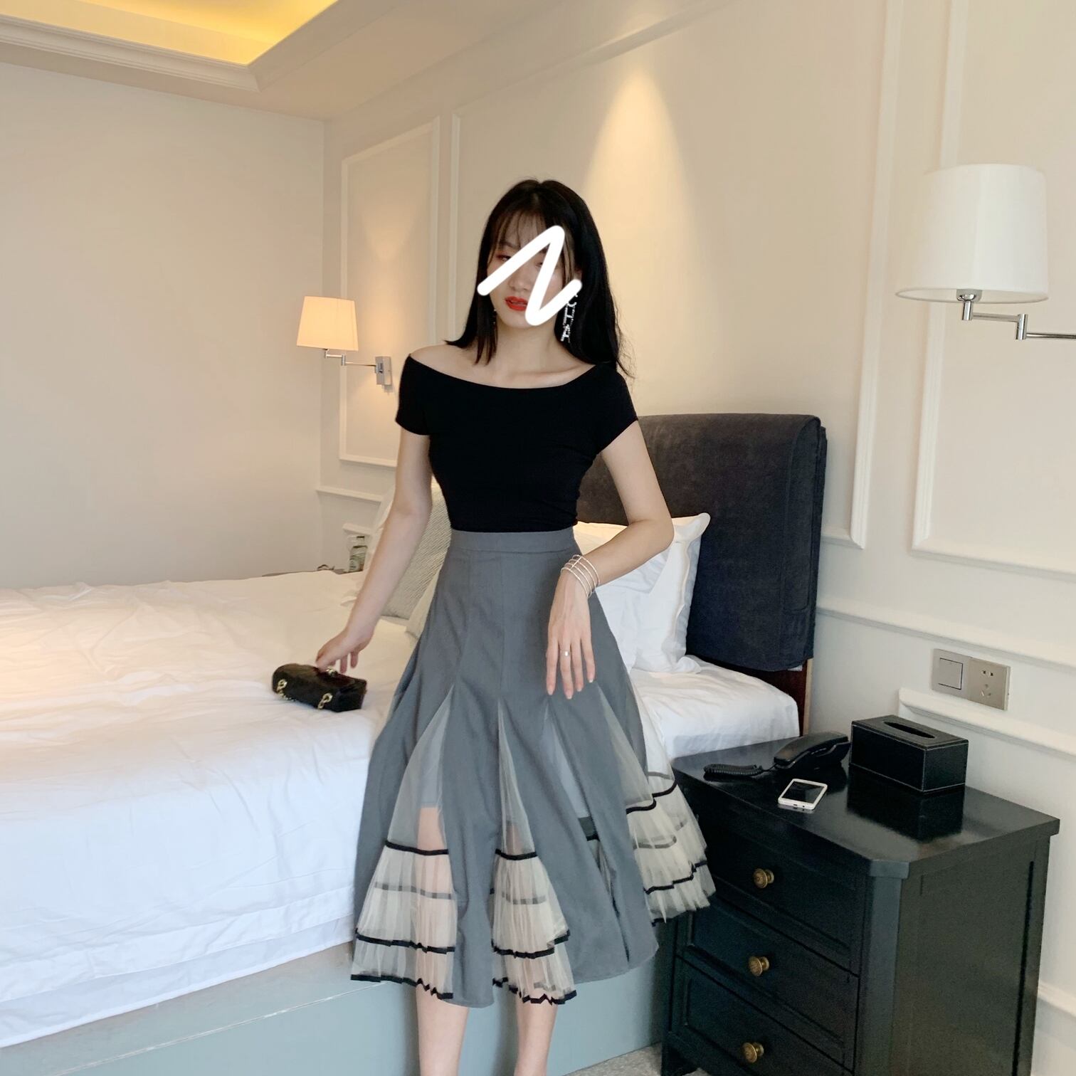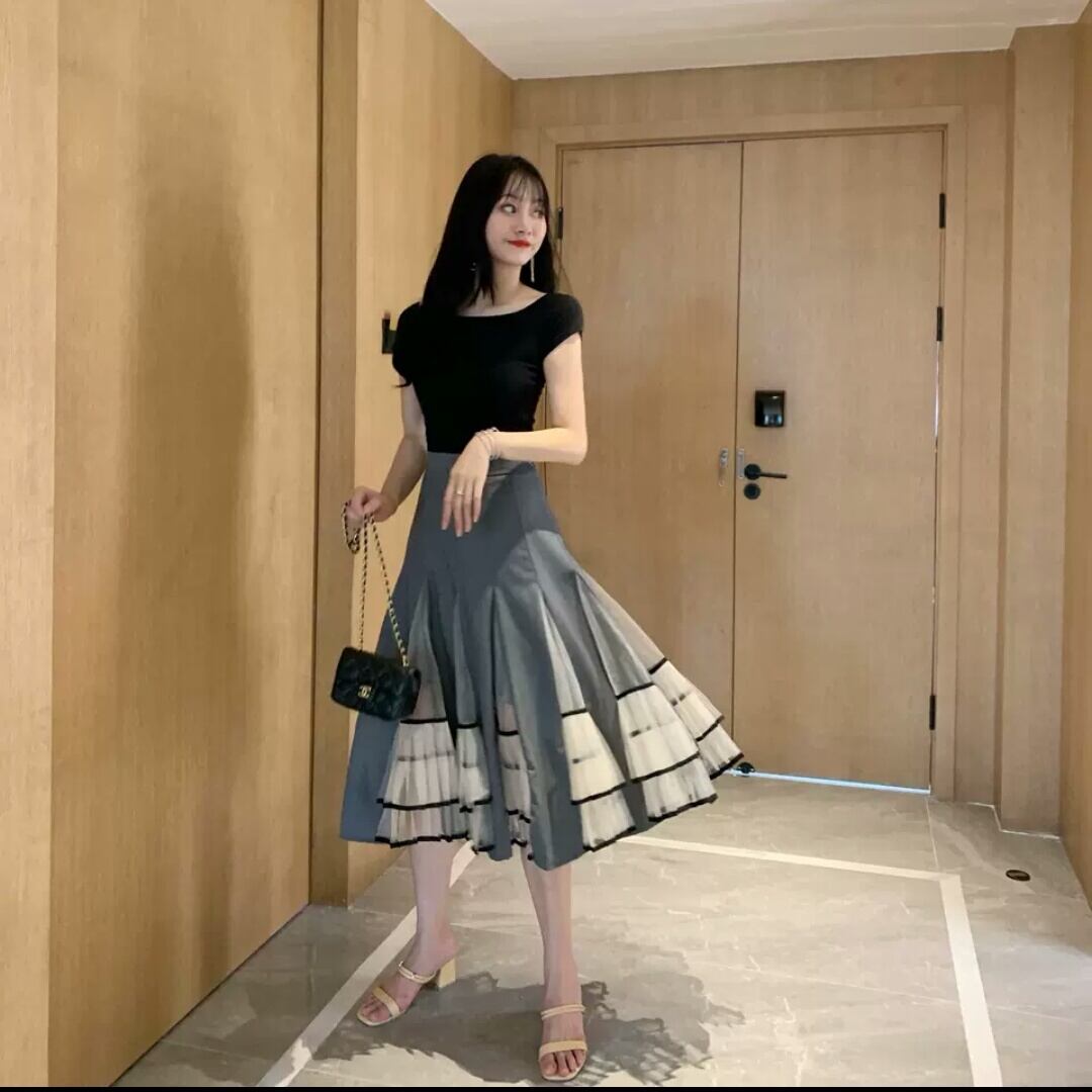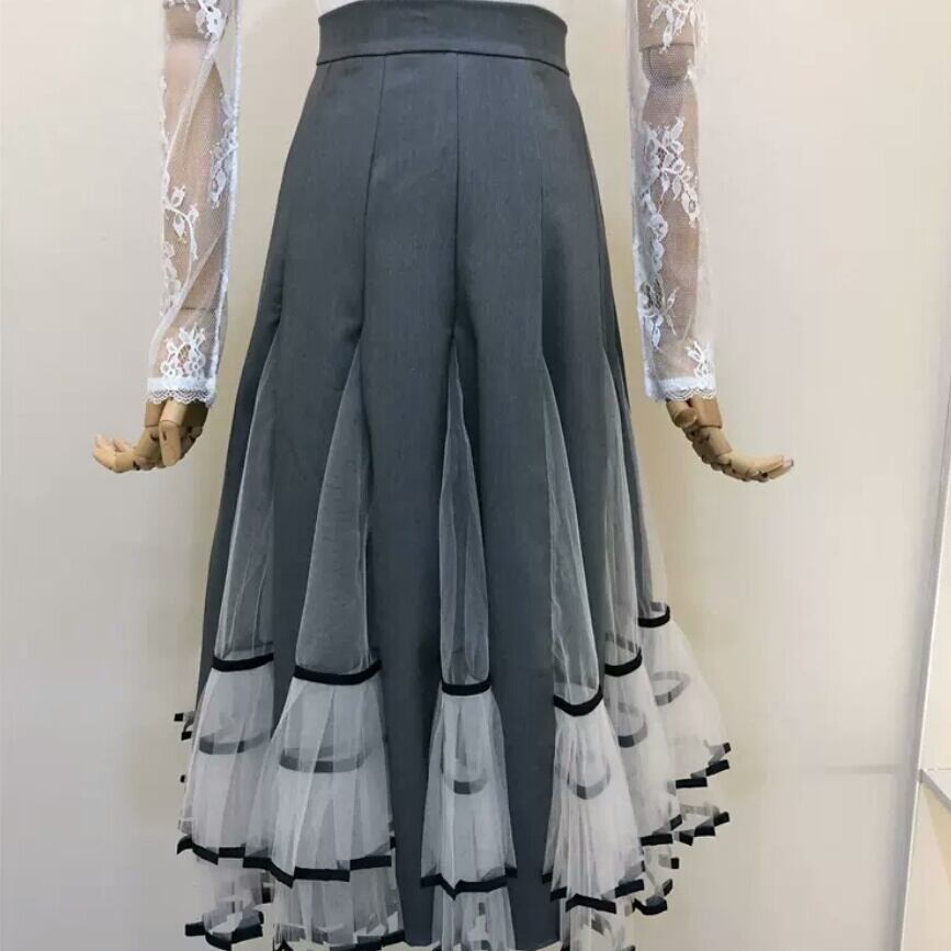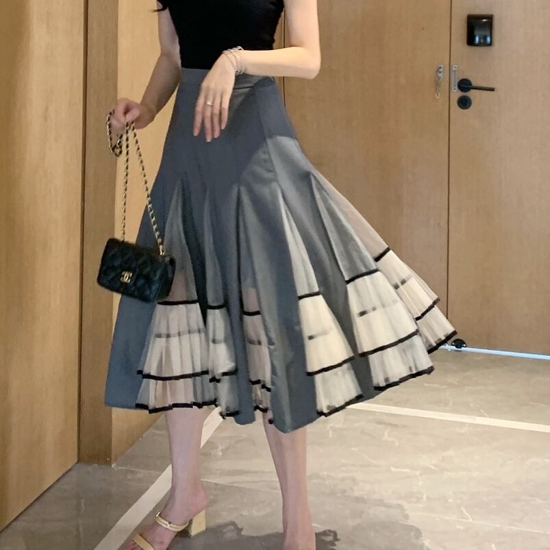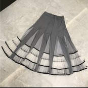 全2色 パフステッチメッシュ スカート ミモレ丈 お出かけ お買い物 デート 女子会 秋冬 春 大人 キレイめ カジュアル
