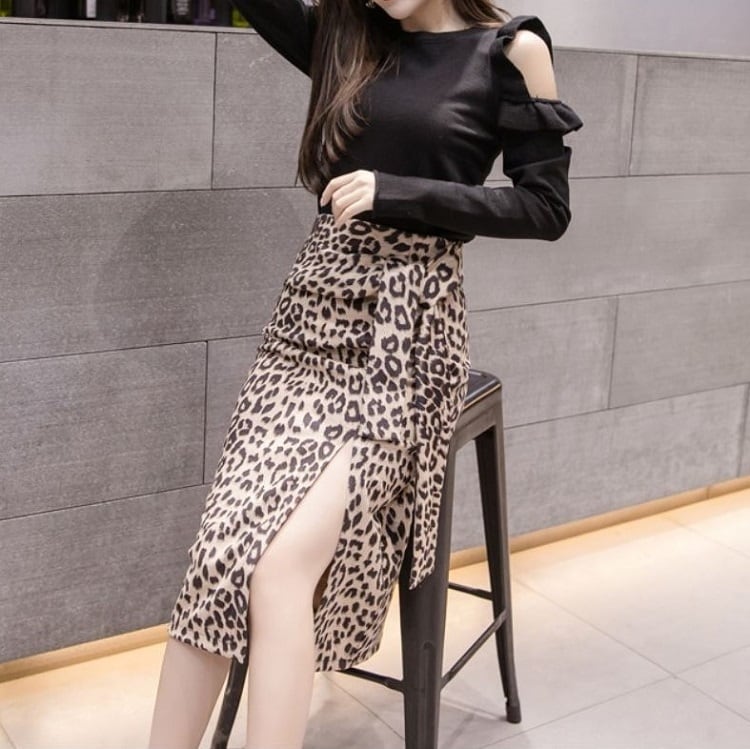 トレンドのレオパード柄がセクシーさをプラスして大人の仕上がりに。