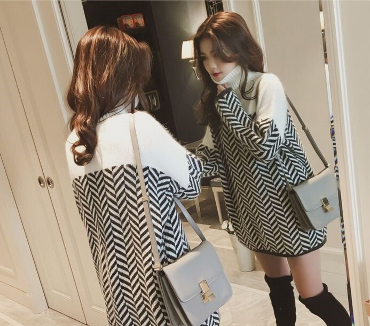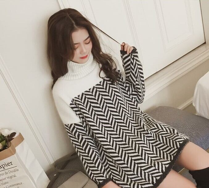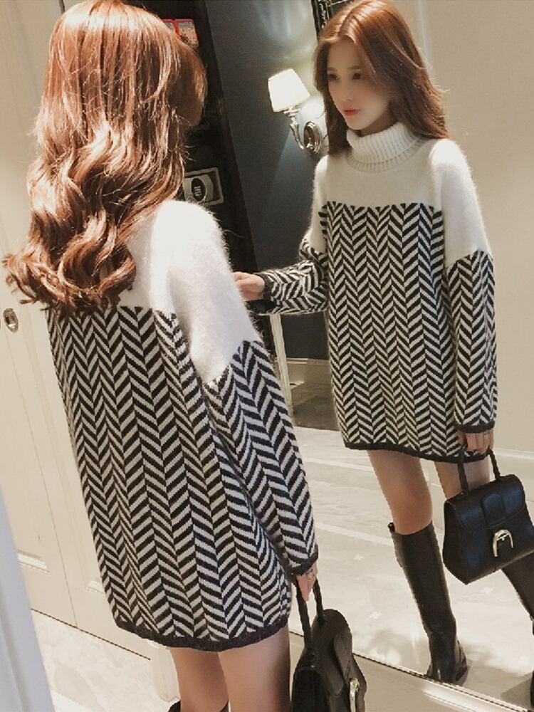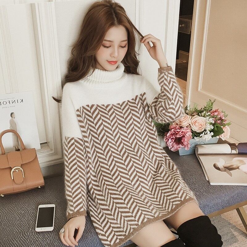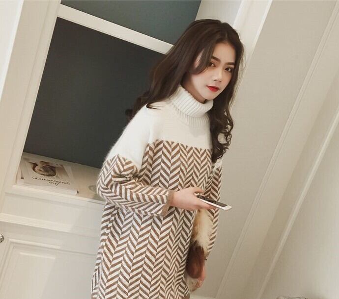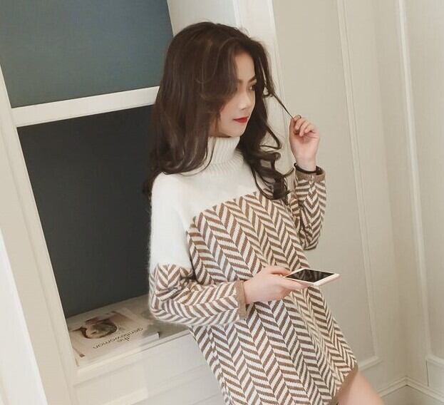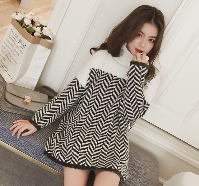 全2色 チュニック ハイネック 長袖 ドロップショルダー ブラック ブラウン セーター 秋 冬 大人カジュアル フェミニン 大人かわいい 韓国 オルチャン
