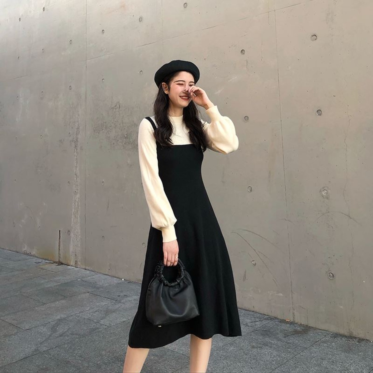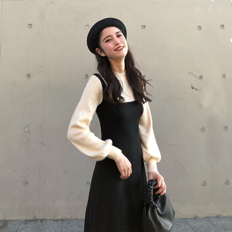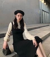 全2色 選べる丈 セットアップ ワンピース ニット ドレス ジャンパースカート ロング丈 ミニ丈 フレア タイト ブラック ベージュ 秋 冬 大人かわいい デート 休日コーデ 韓国 オルチャン