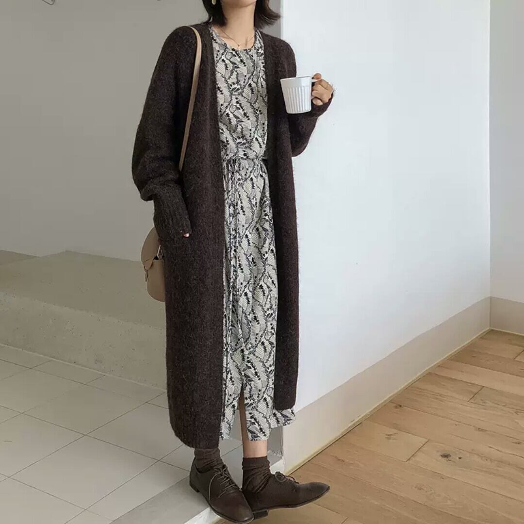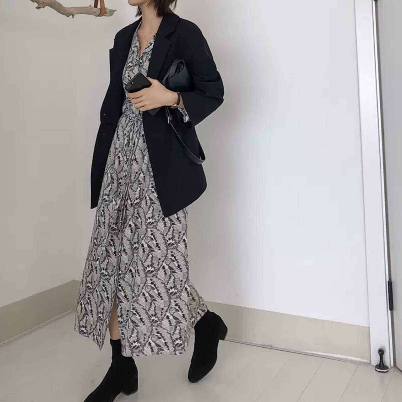 ロング丈 個性的 柄 シフォン ワンピース マキシ丈 大人 可愛い カジュアル キレイめ お出かけ お買い物 デート 女子会 通学 学生 通勤 秋冬 春