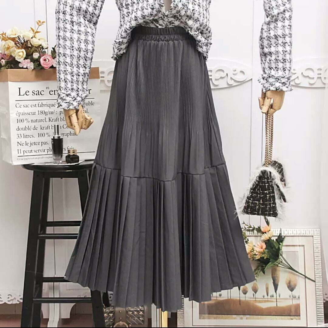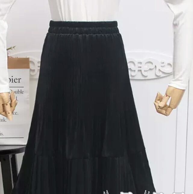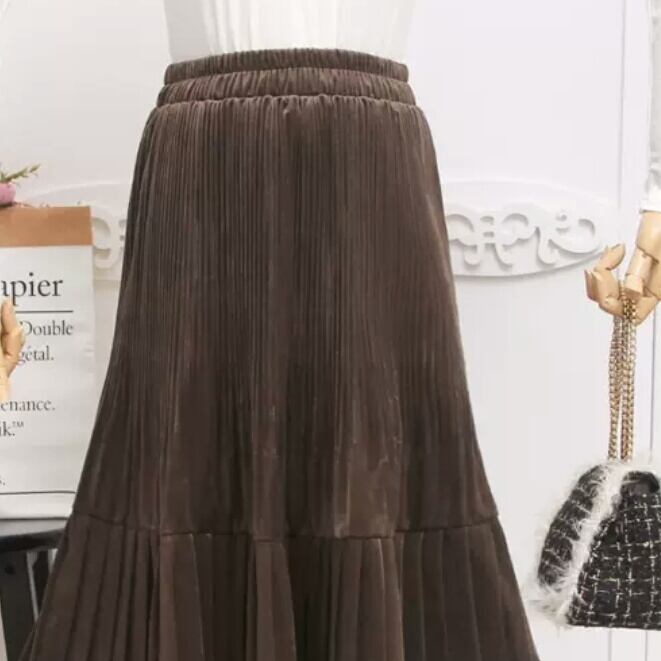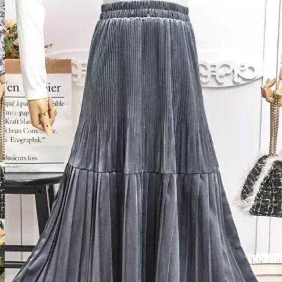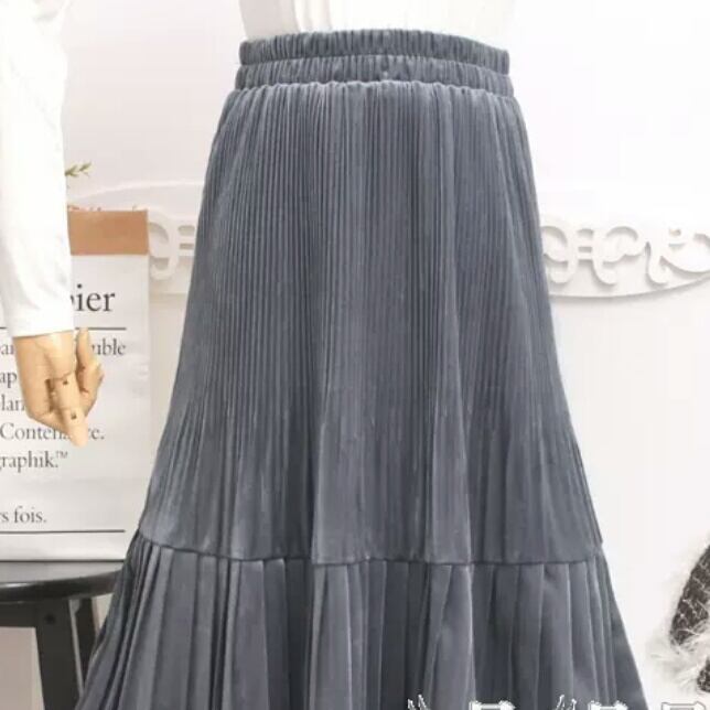 全6色 プリーツ スカート ロング丈 無地 ベルベット お出かけ お買い物 デート 女子会 秋冬 通勤 通学 大人 カジュアル シンプル