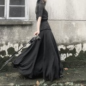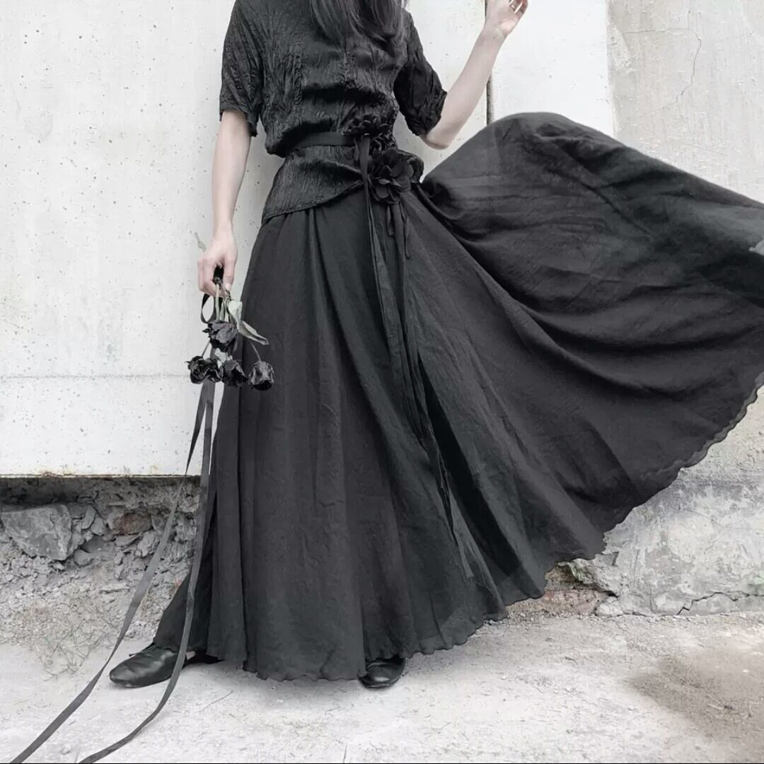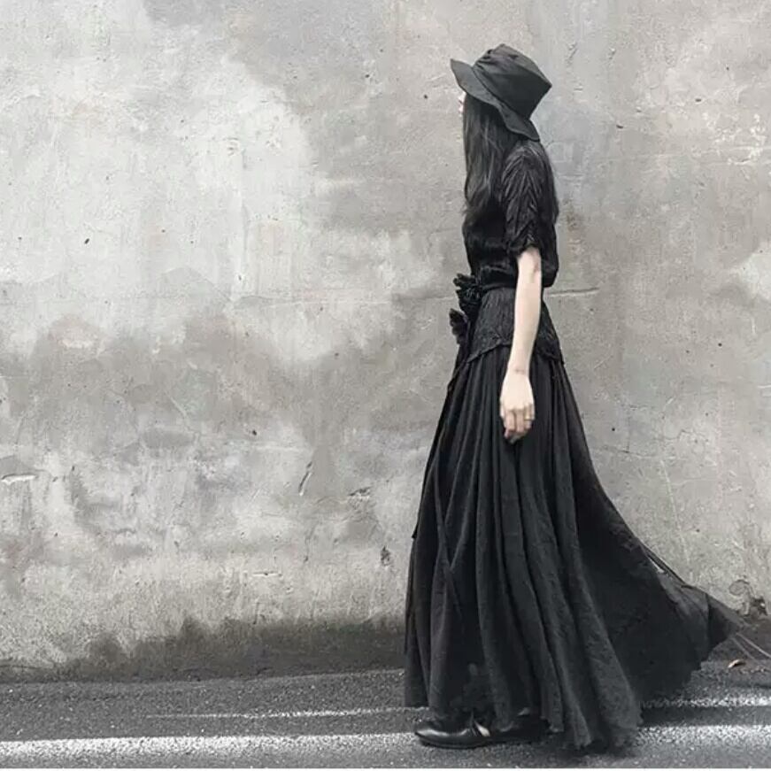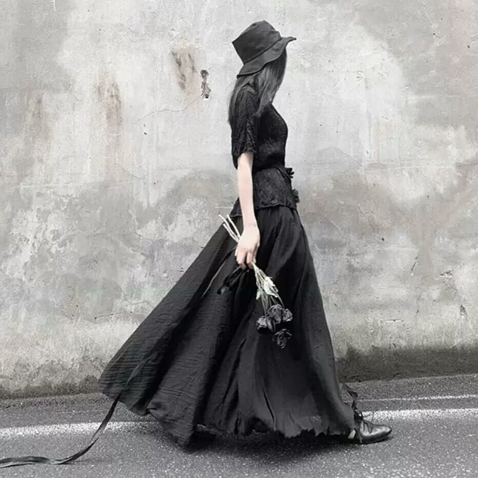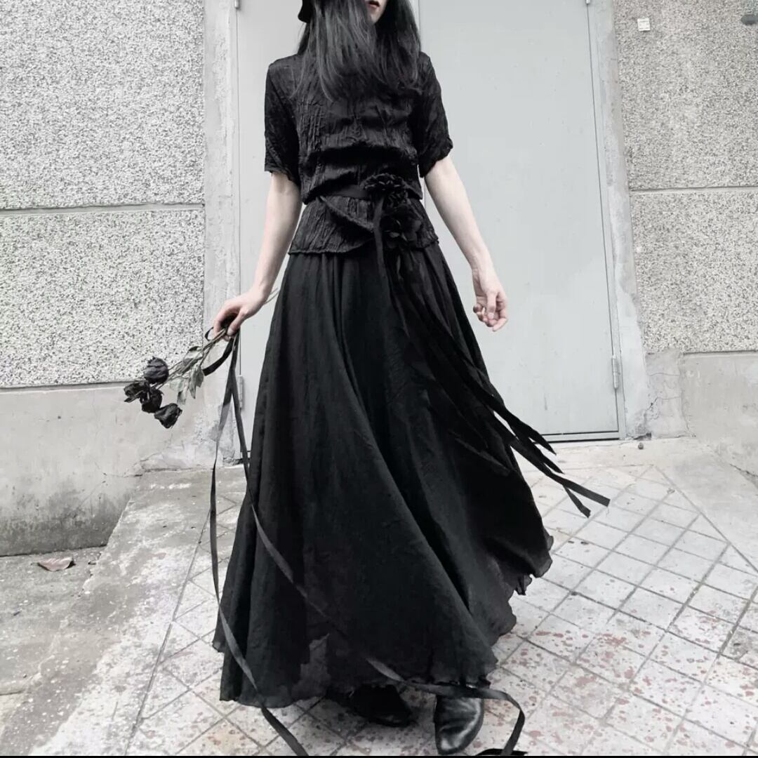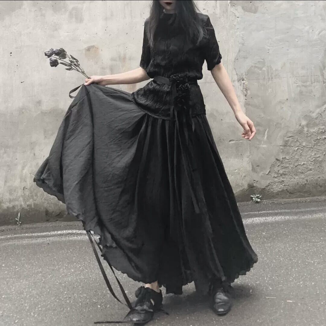 ロング丈 スカート ルーズ ゴムウエスト ダーク ゴスロリ お出かけ お買い物 デート 女子会 秋冬 春 個性的 大人 カジュアル キレイめ