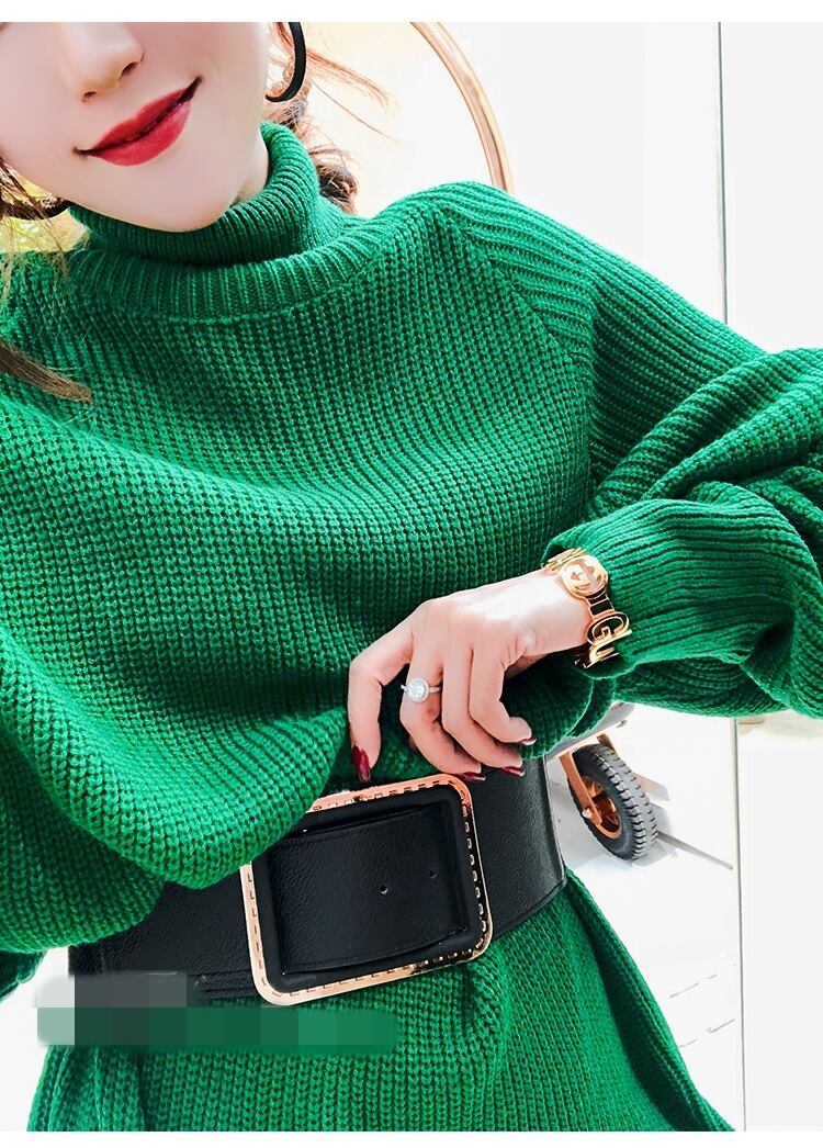 全3色 ニットワンピース ベルト付き タートルネック 長袖 ロング丈 ワンピース ゆったり 秋冬 お出かけ 女子会 デート カジュアル フェミニン 大人可愛い こなれ感 エレガント とろみ ウエストマーク 無地