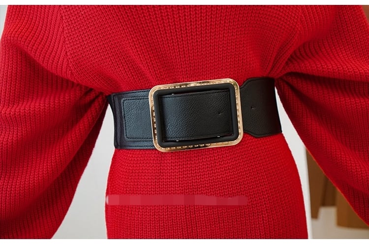 太めベルトでウエストマークすることにより、フェミニンにスッキリと着こなせます。