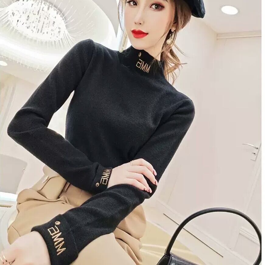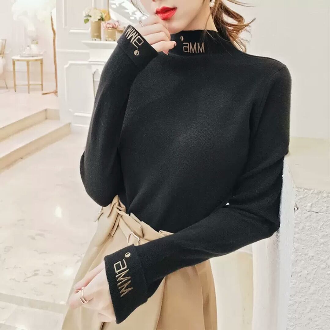 全3色 ハイネック ニット トップス ロゴ レタリング セーター 大人 カジュアル キレイめ シンプル お出かけ お買い物 デート 女子会 通学 通勤 秋冬 春