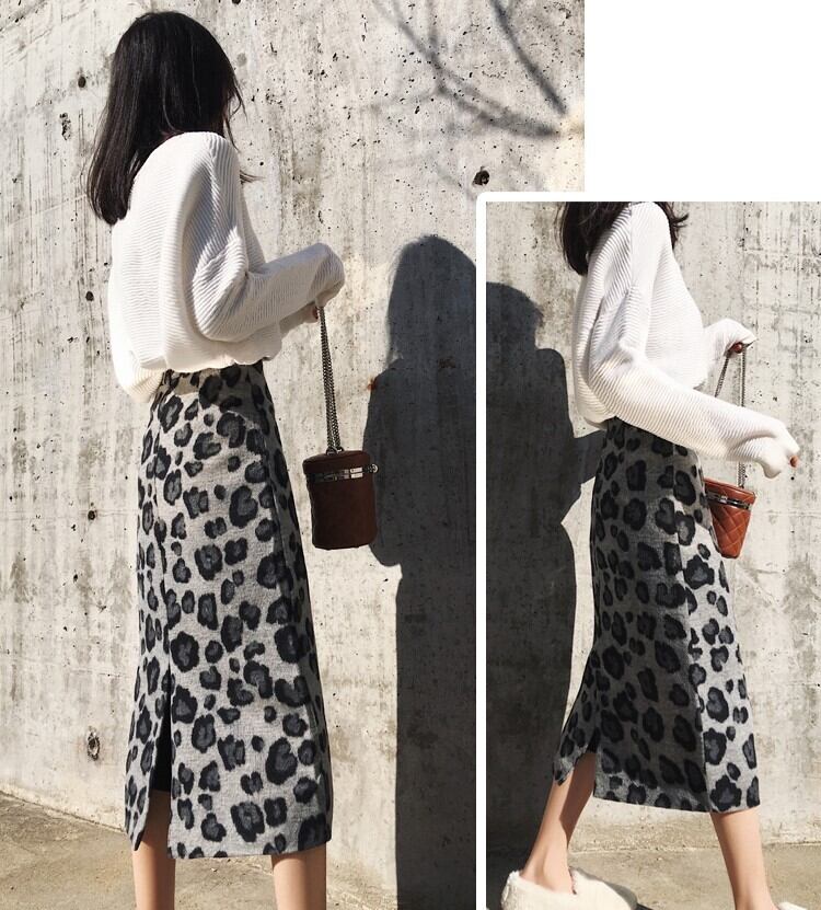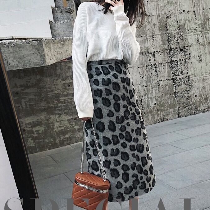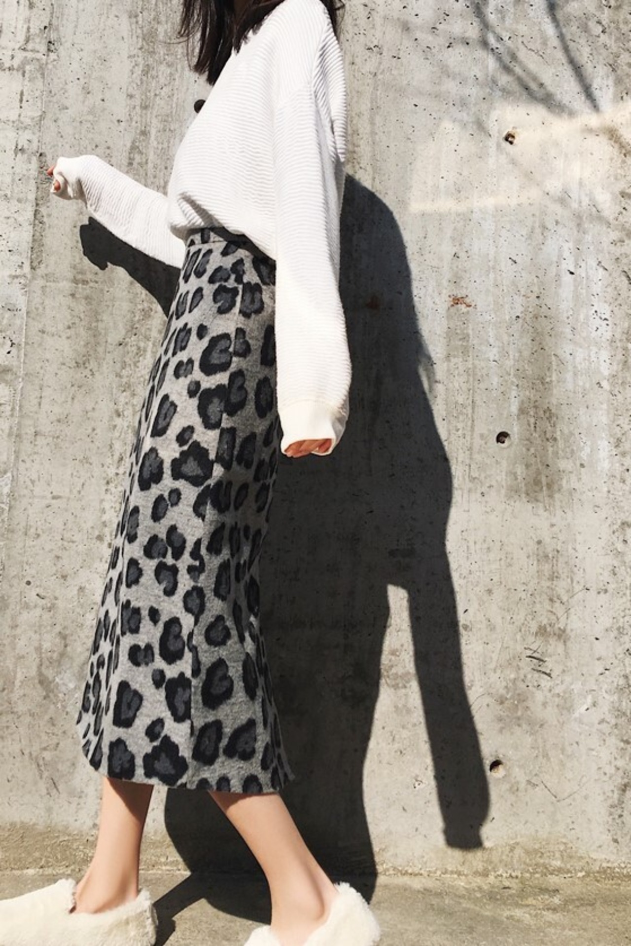 レオパード柄スカート アニマル柄 ミモレ丈 タイト ハイウエスト 大人カジュアル 休日コーデ デート 秋 冬 韓国 オルチャン