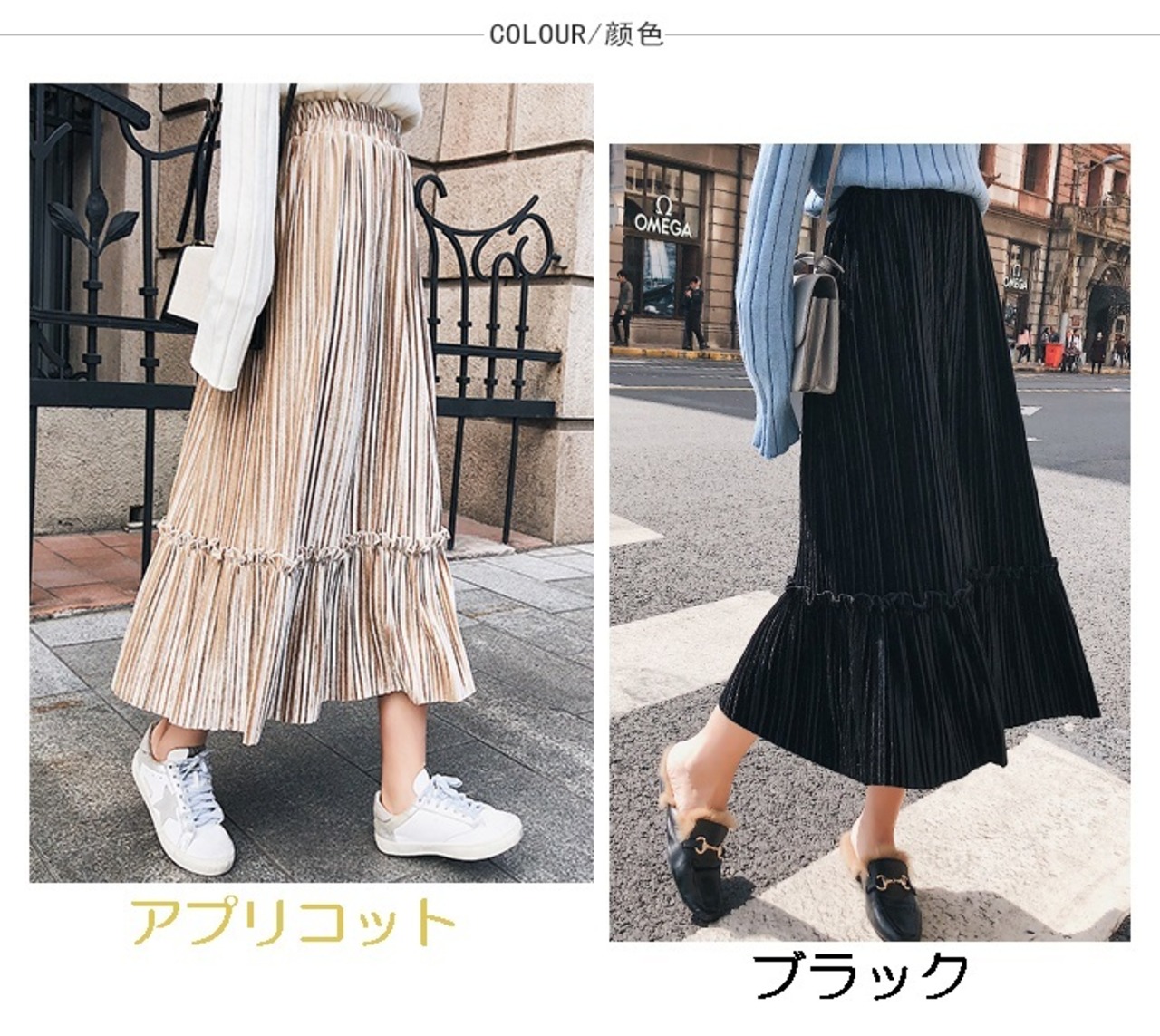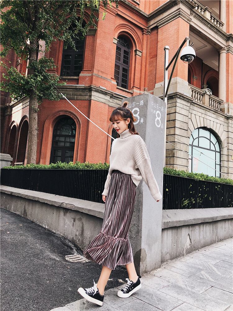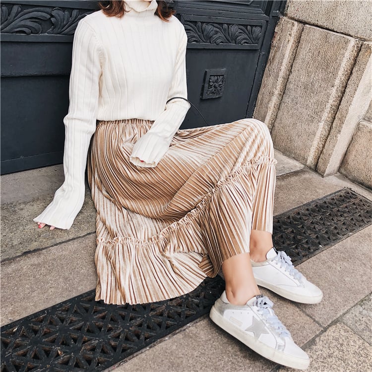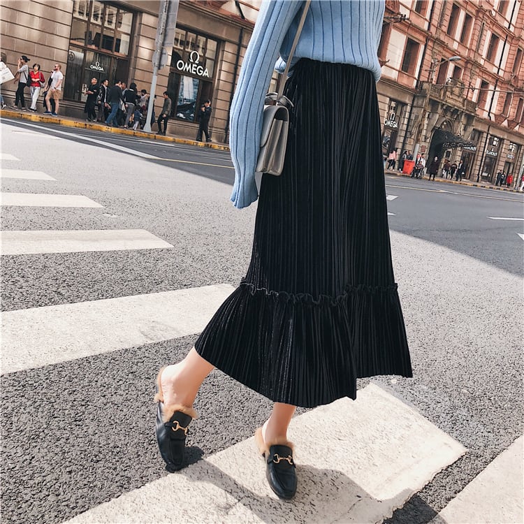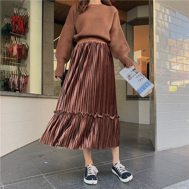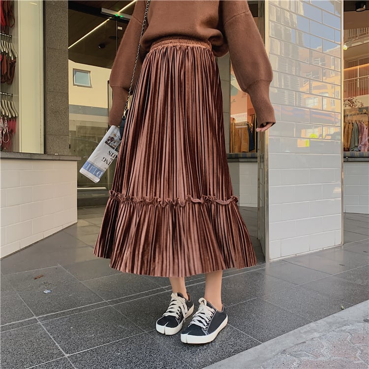秋冬ファッションに欠かせないベロア生地のプリーツスカート♪
