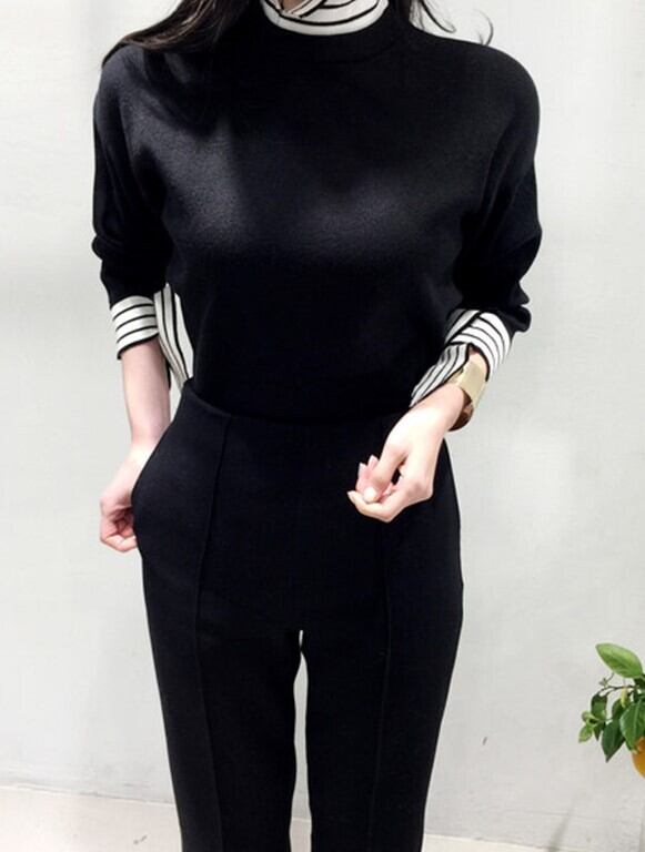 シックなカラーで清楚な襟元が上品見えしますよ◎