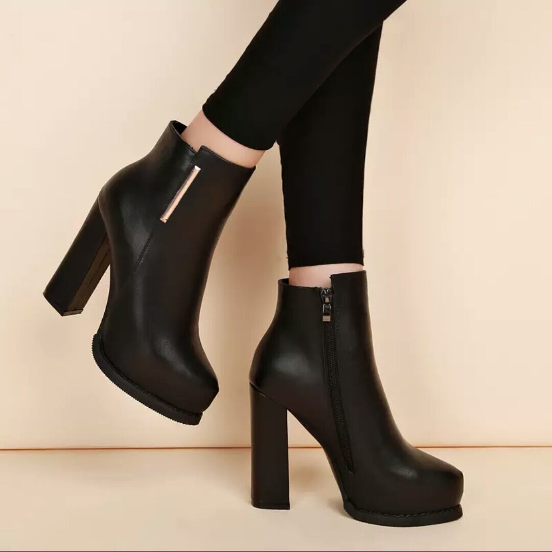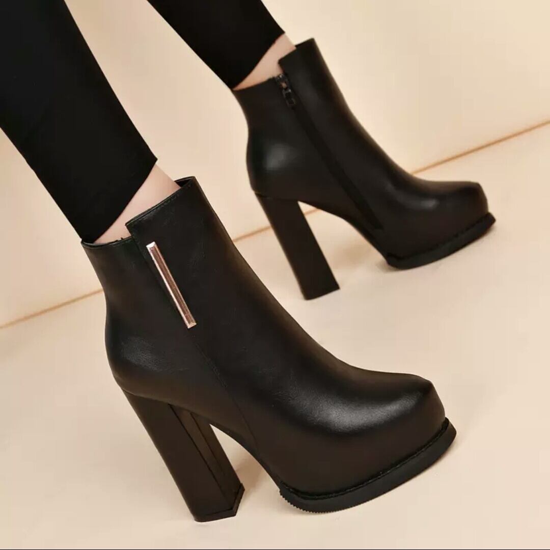 全2種 ショートブーツ ブーティ ヒール高 太ヒール お出かけ お買い物 デート 女子会 秋冬 春 通学 通勤 学生 モード系 大人 カジュアル キレイめ シンプル