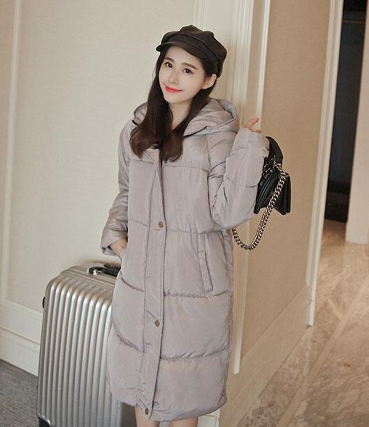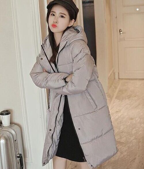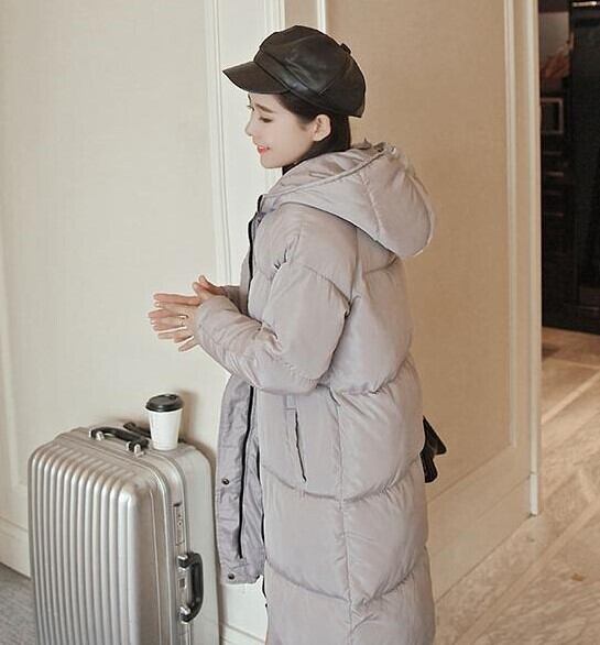 全2色 中綿コート ロング丈 フード付き グレー ブラック 秋 冬 防寒 羽織り アウター 通勤 通学 学生 大人 カジュアル キレイめ シンプル 韓国 オルチャン