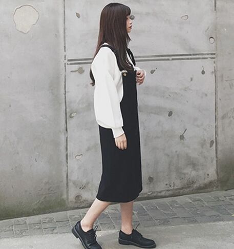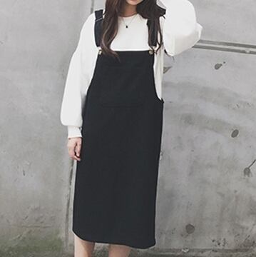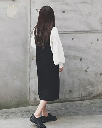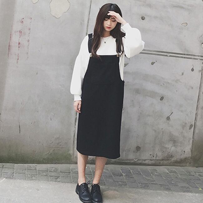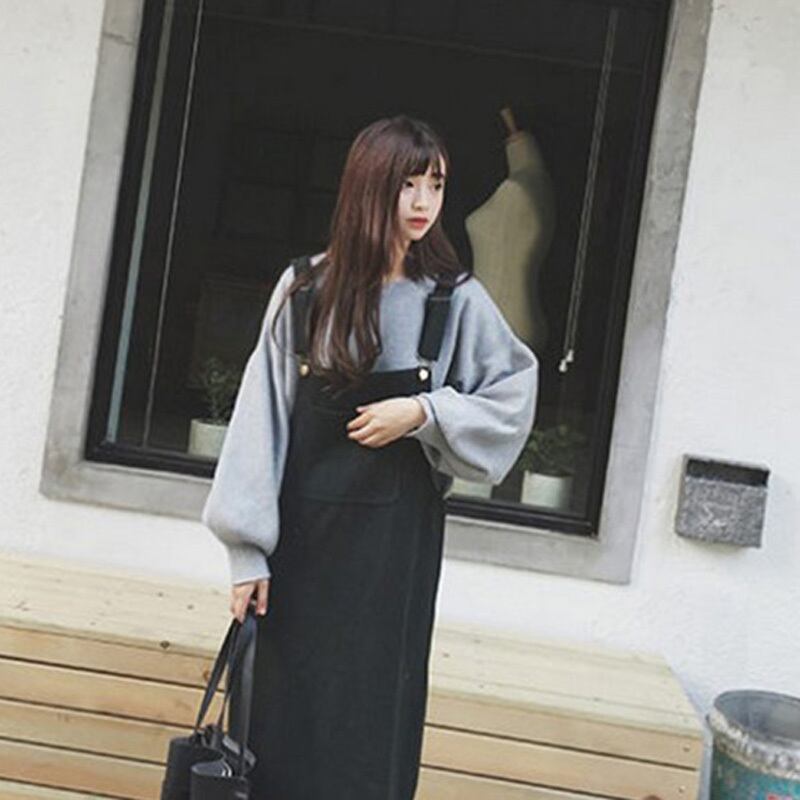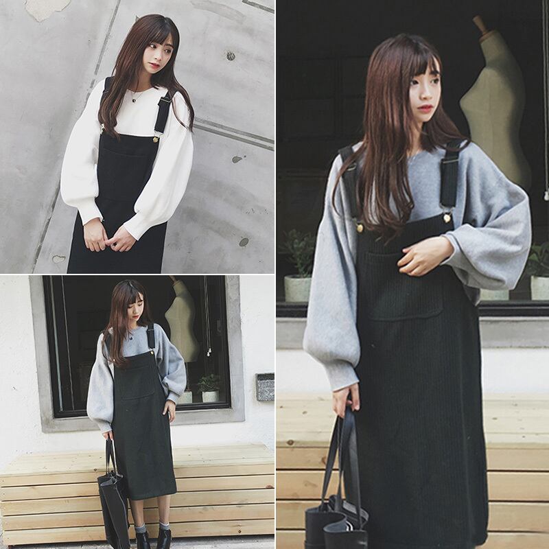 全2色 セットアップ トップス ジャンバースカート 長袖 ミモレ丈 ワンピース コーデュロイ ツーピース 2点セット レトロ プルオーバー カジュアル デート 大人可愛い 秋 春 冬