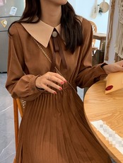 プリーツ加工が上品なひざ丈ワンピースです。