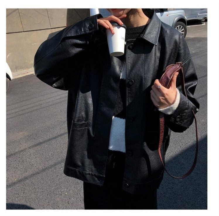 全2種 ライダースジャケット 裏起毛 レザージャケット シングル オーバーサイズ ゆったり 秋冬 お出かけ デート 女子会 カジュアル クール メンズライク PUレザー 無地