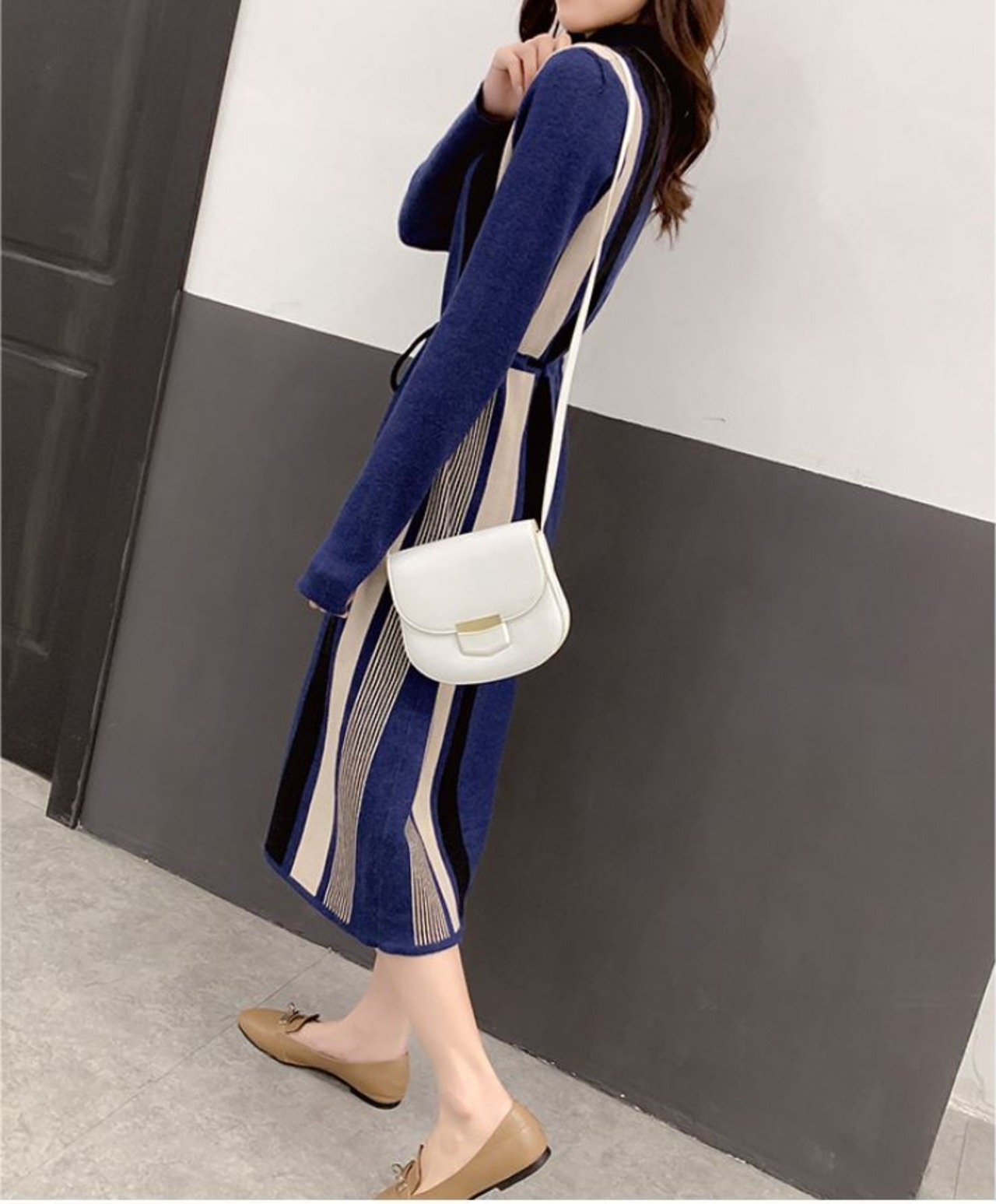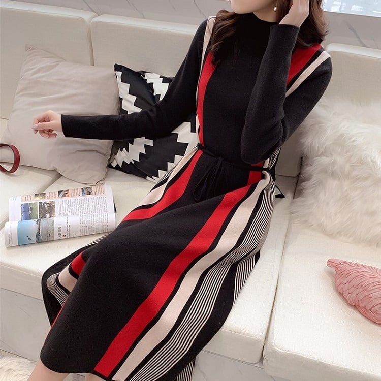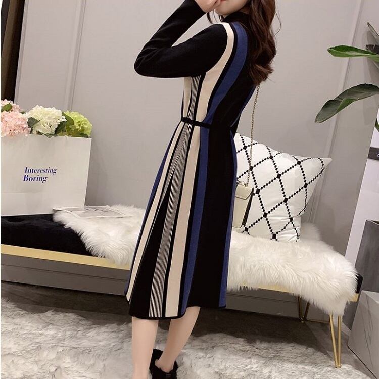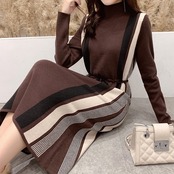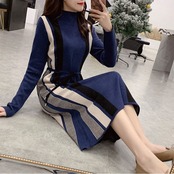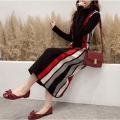 程よいフィット感でシンプルデザインの長袖ニットワンピース