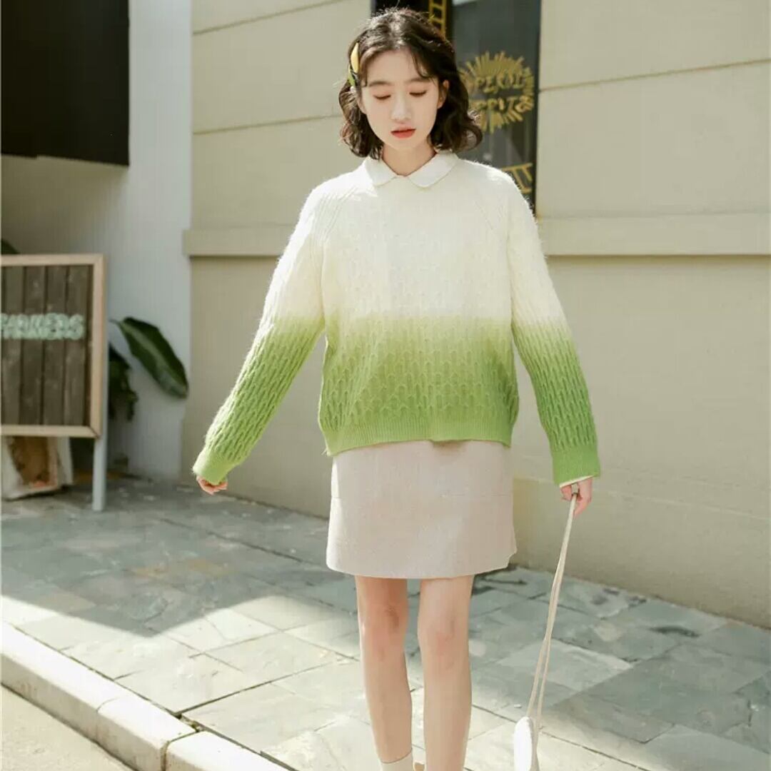 全2色 グラデーション セーター ニット トップス 長袖 大人 カジュアル 可愛い キレイめ お出かけ お買い物 デート 女子会 秋冬 春 通学 学生 通勤