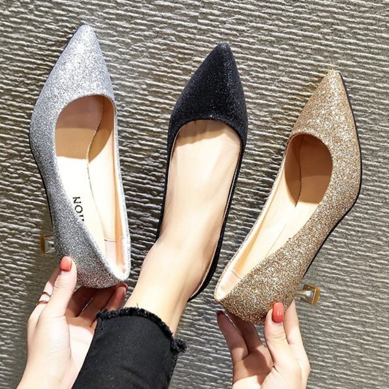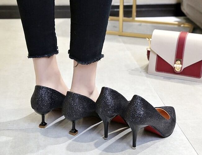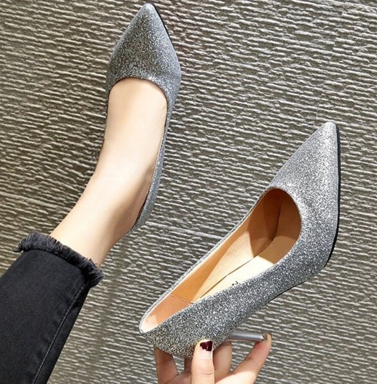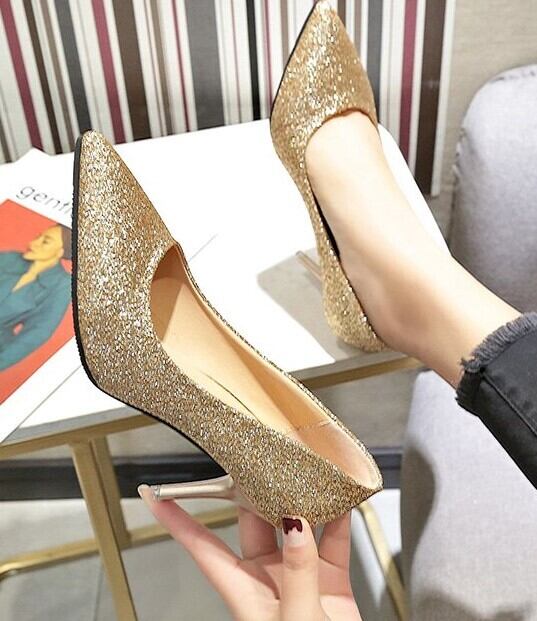 全3色 パンプス 選べるヒール 選べるサイズ ピンヒール ポインテッドトゥ セクシー 美脚 7cm 5cm 3cm パーティ 結婚式 カジュアル ブラック ゴールド シルバー 韓国 オルチャン 秋 冬