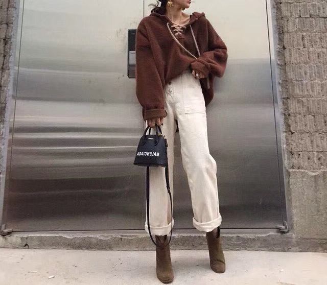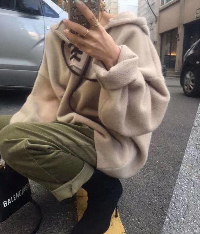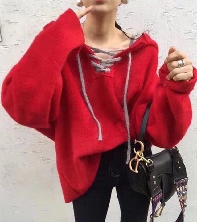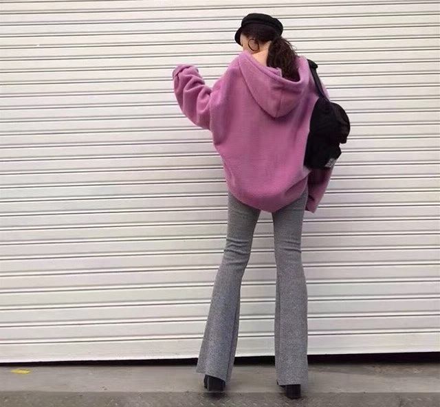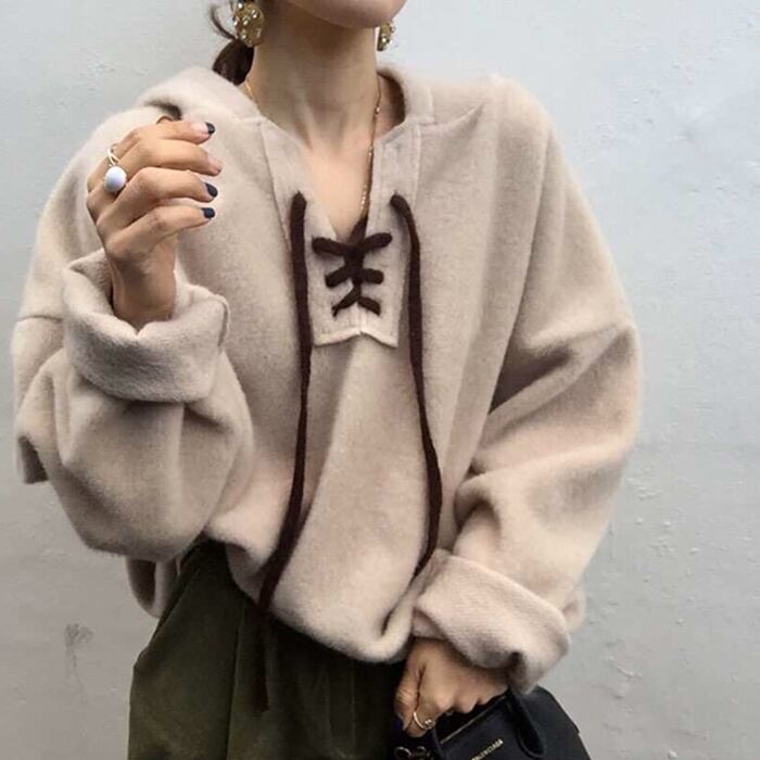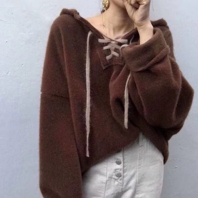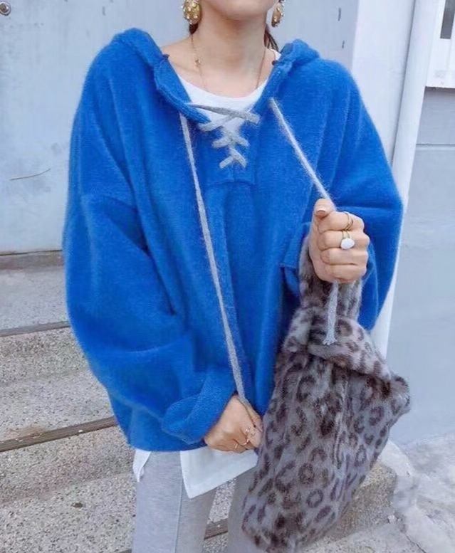 全5色 パーカー トップス 秋 冬 フロントストラップ ルーズ ブラウン レッド パープル ブルー ベージュ 大人カジュアル 学生 通学 韓国 オルチャン