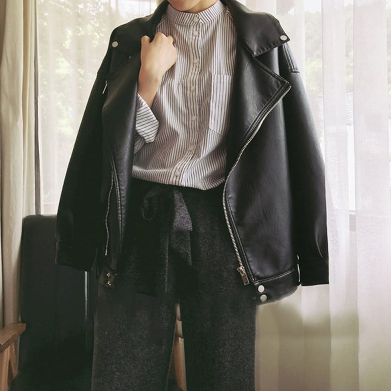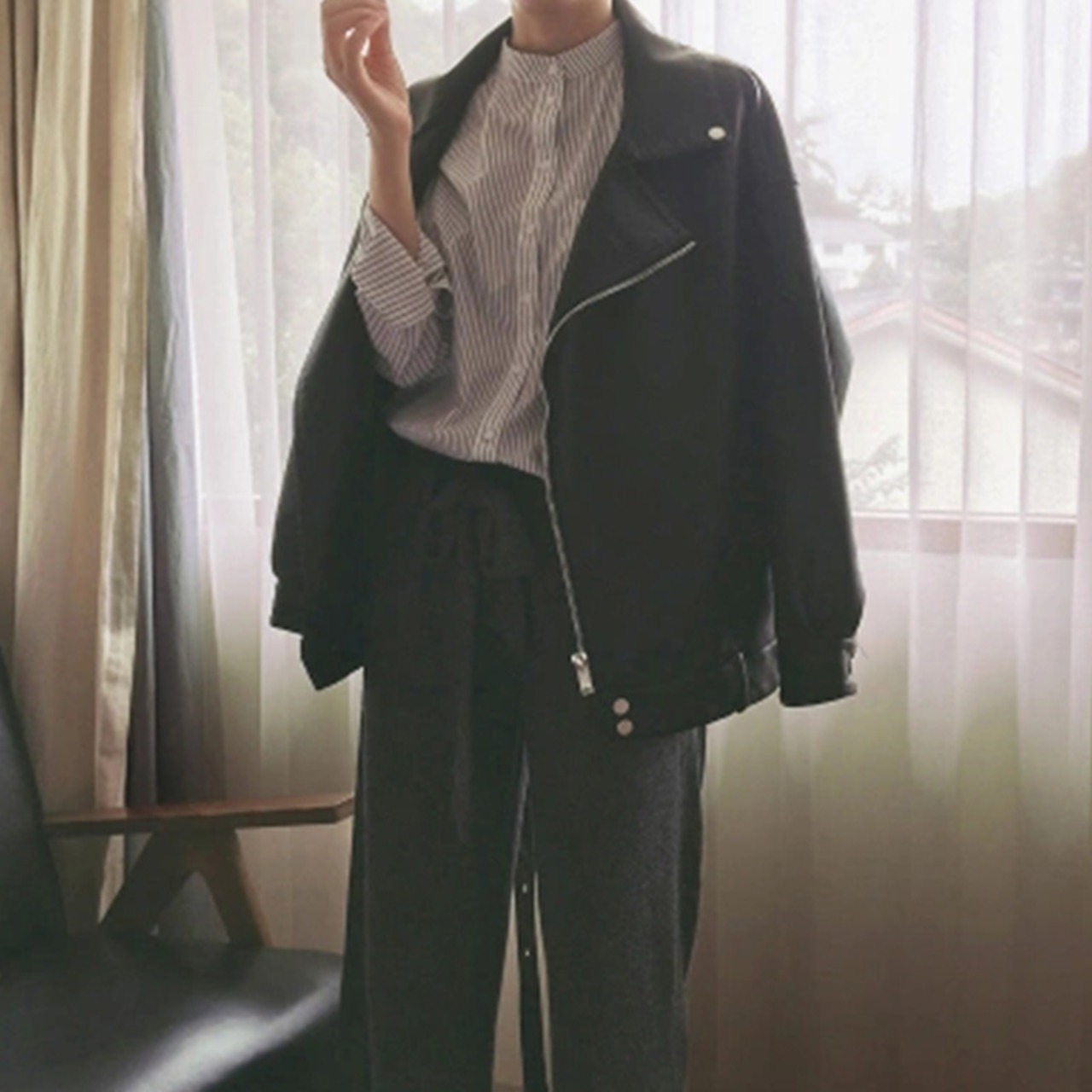 ジャケット レザー ライダースジャケット ジッパー ファスナー PU ロック クール メンズライク クール カジュアル シック 秋 春 冬