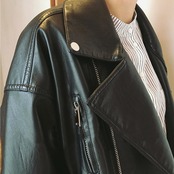 フェイクレザーにジッパー使いがおしゃれな定番デザインのライダースジャケット。