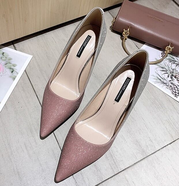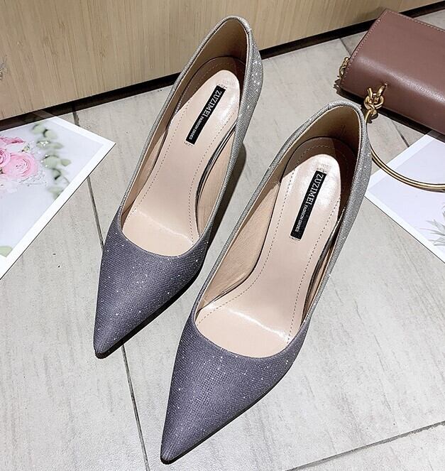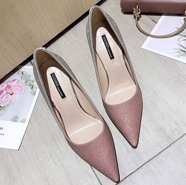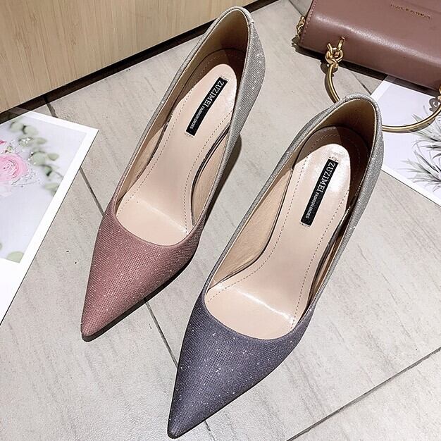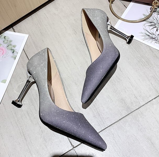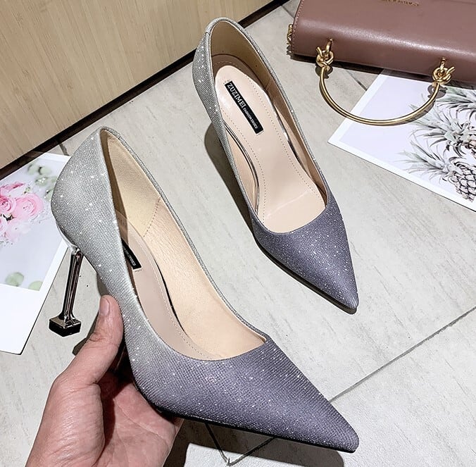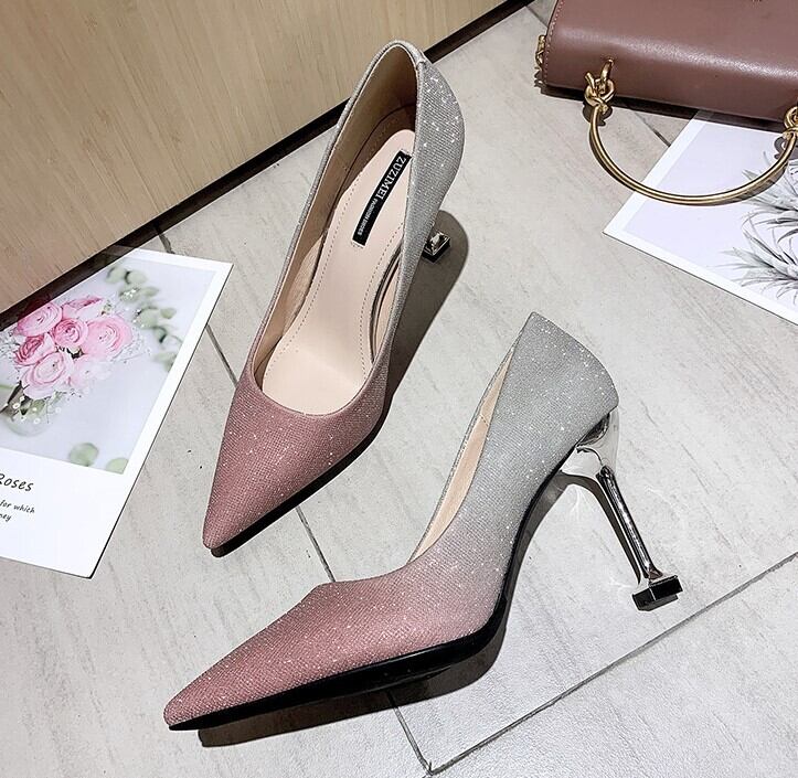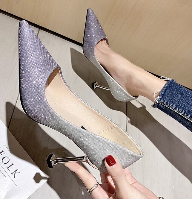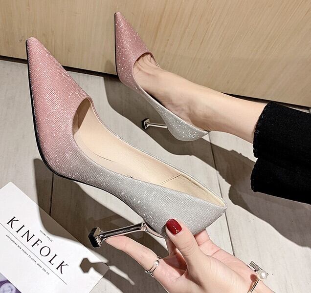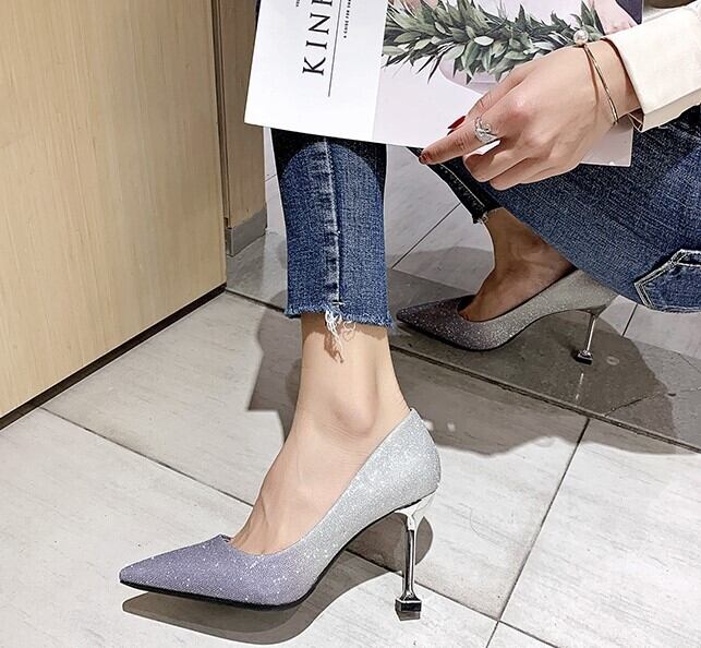 全2色 パンプス ラメ ピンヒール ポインテッドトゥ セクシー 美脚 パーティ カジュアル ピンク グレー 韓国 オルチャン 秋 冬
