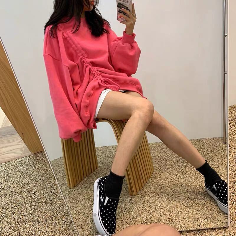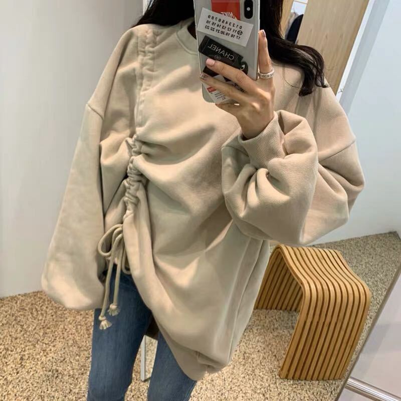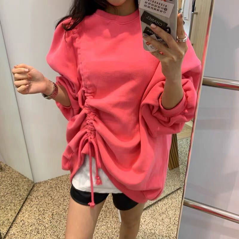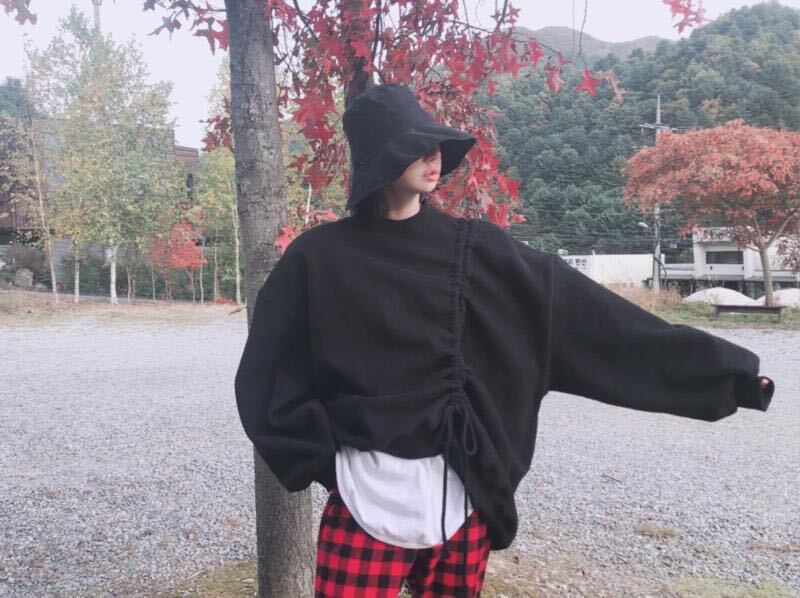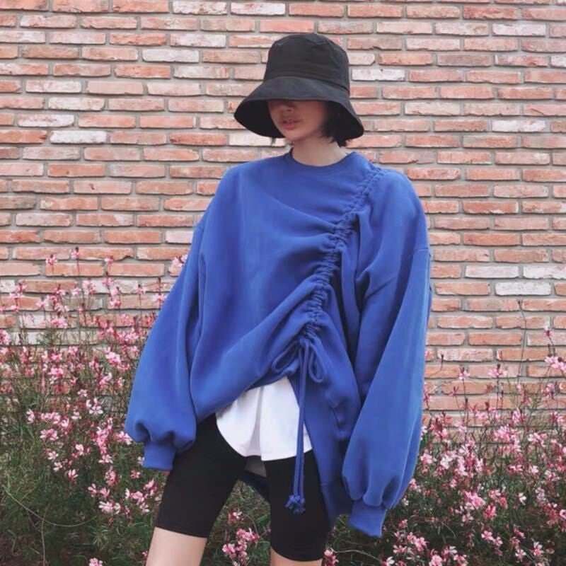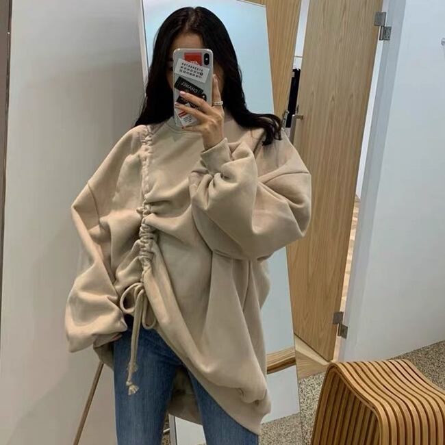 全4色 トップス プルオーバー フロントコンシャス オーバーサイズ ゆったり パフスリーブ 無地 トレーナー ラウンドネック ロングスリーブ カジュアル 韓国 秋 冬 春