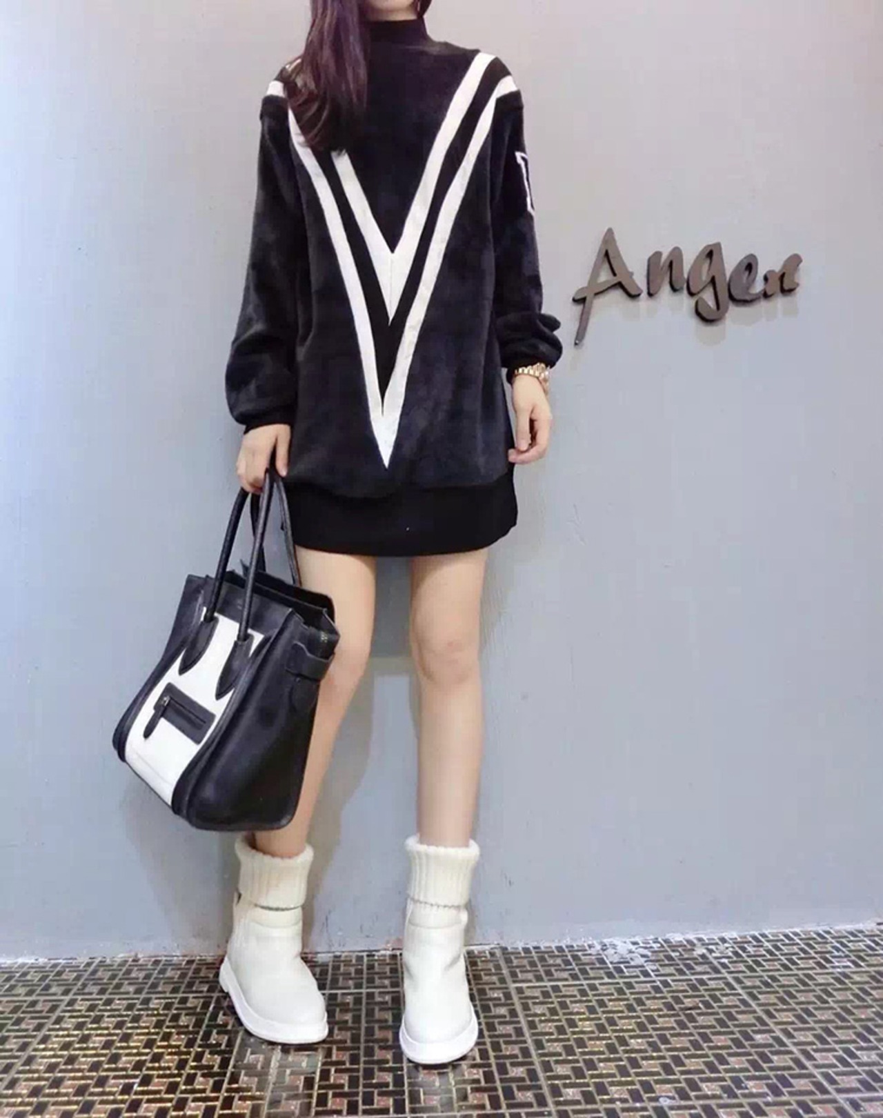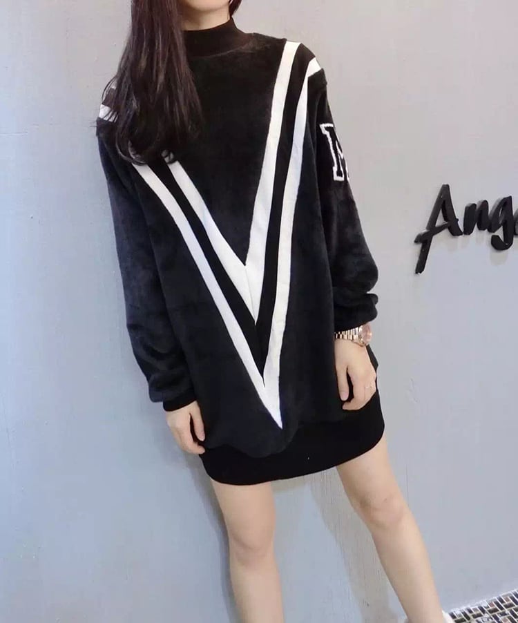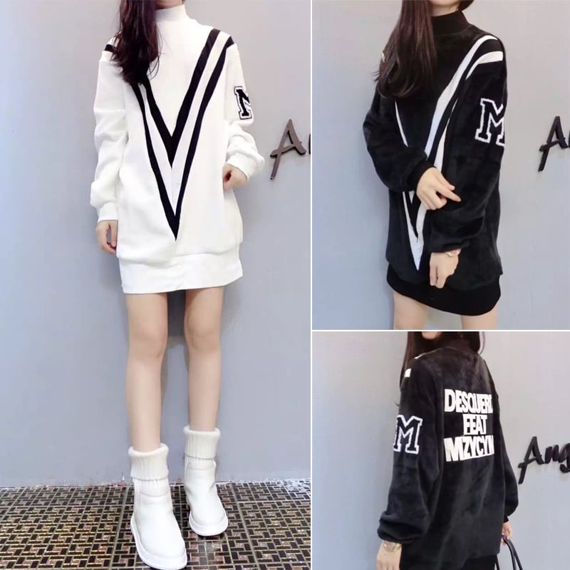 全2色 選べる裏起毛 ミニワンピース スウェット ハイネック チュニック ブラック ホワイト 大人カジュアル 休日コーデ 韓国 オルチャン リラックスウェア