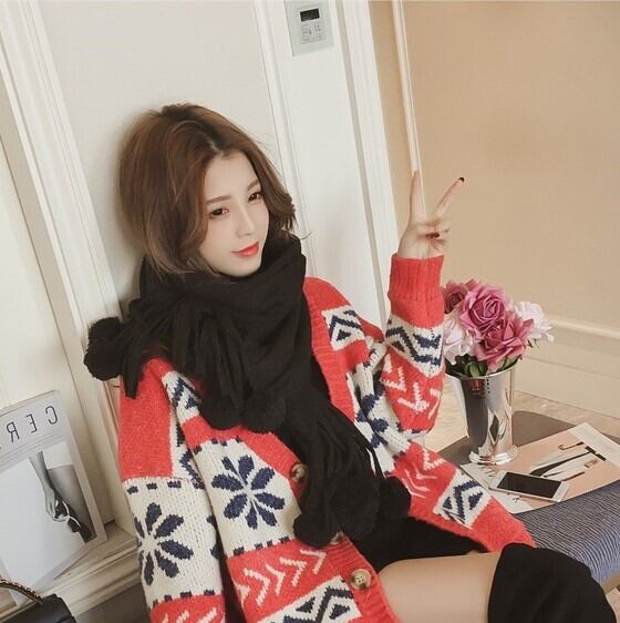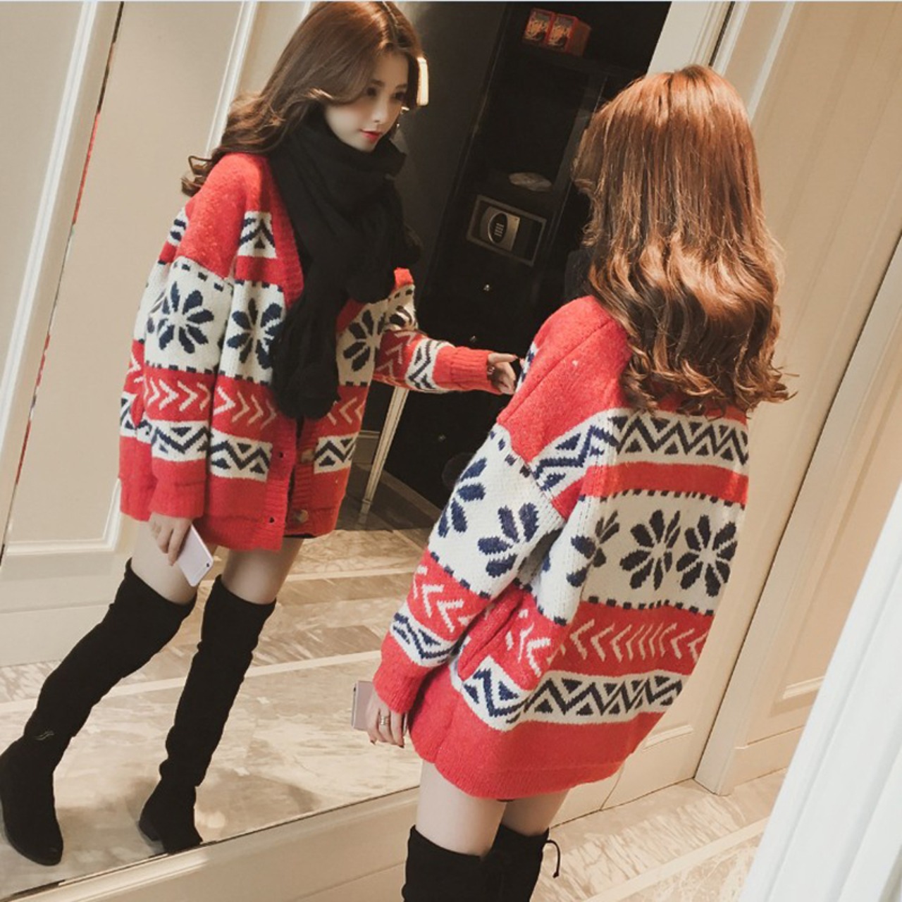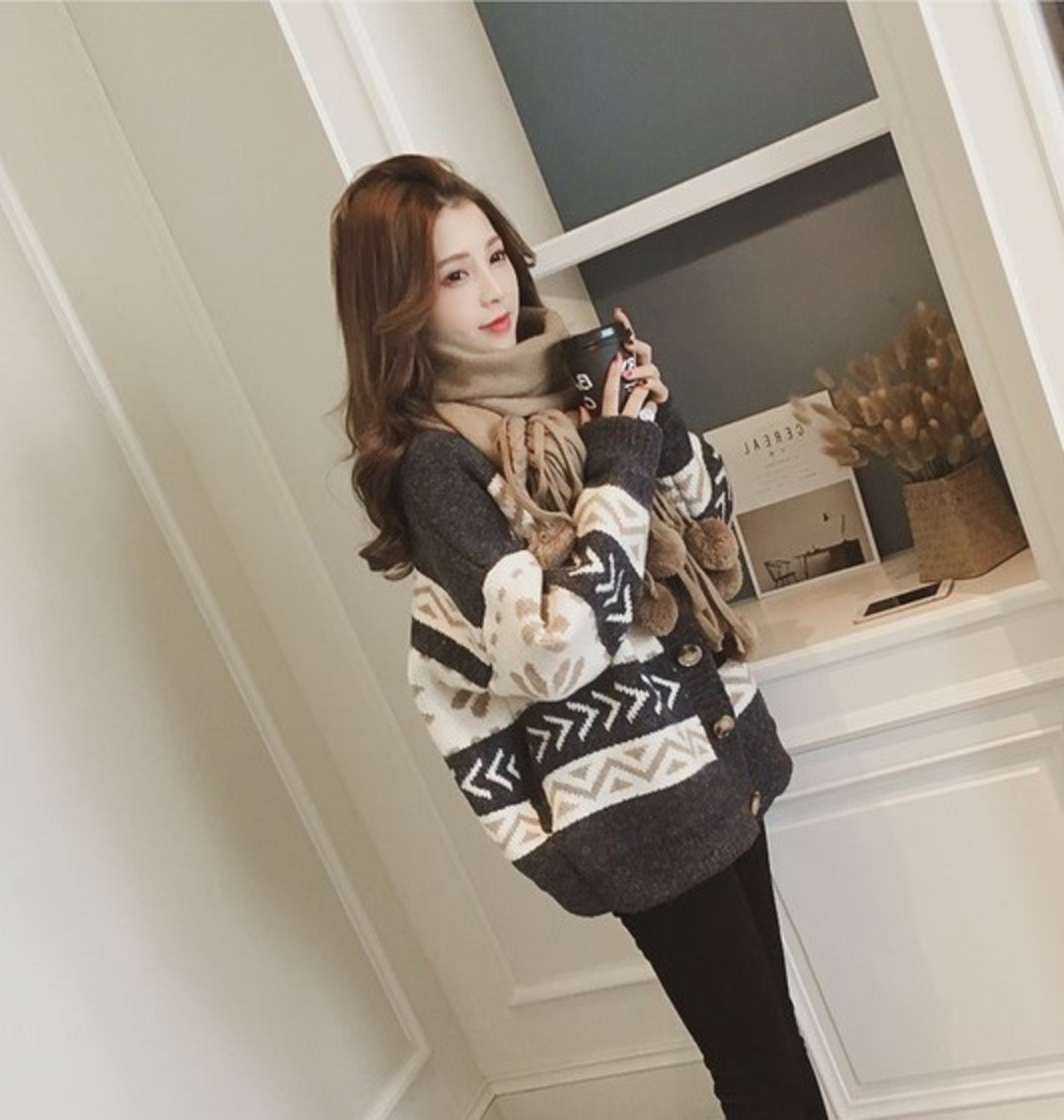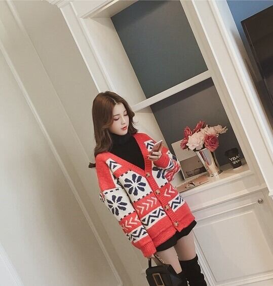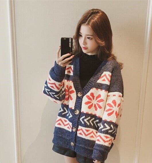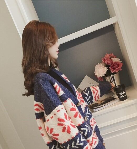 全3色 ノルディック柄 カーディガン アウター 羽織 長袖 ドロップショルダー Vネック 秋 冬 大人かわいい 大人カジュアル 通学 学生 韓国 オルチャン