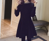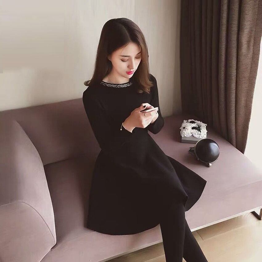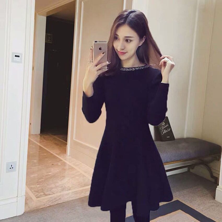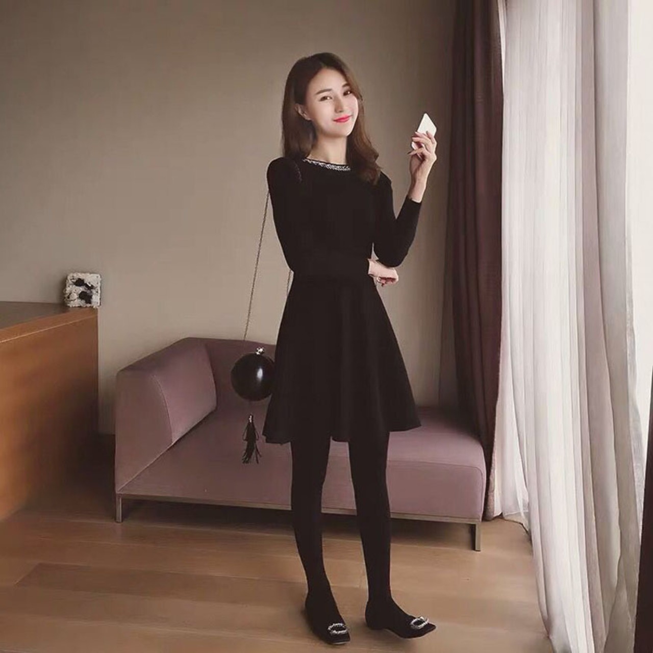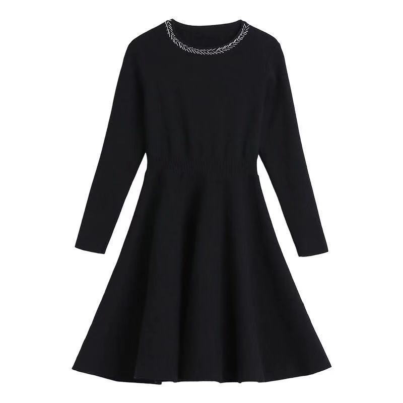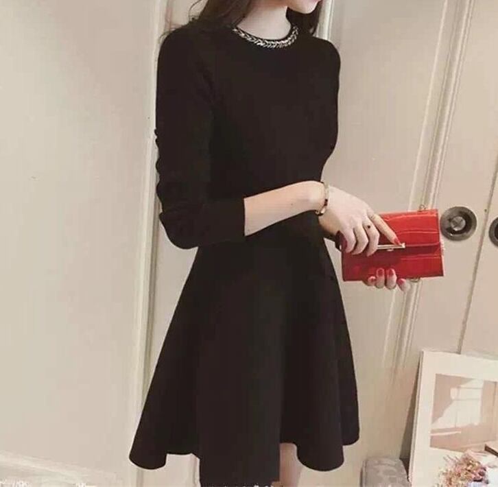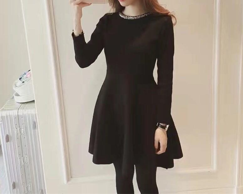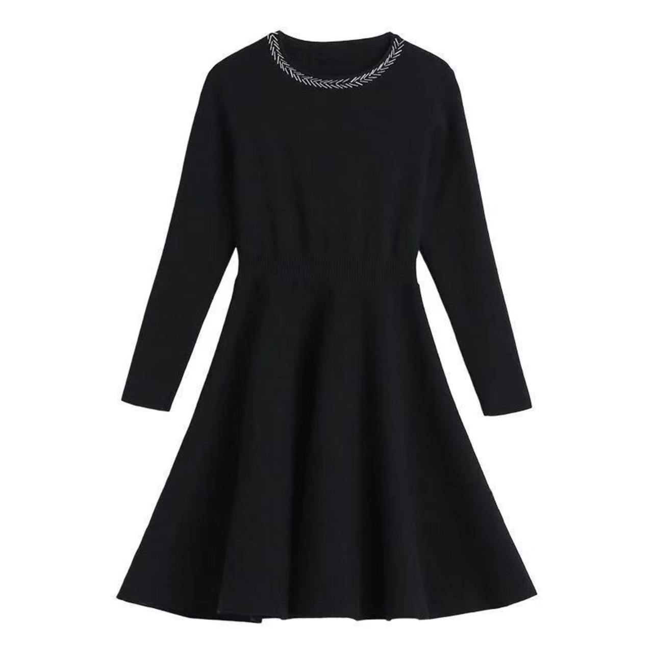 ワンピース ドレス ミニ丈 ショート丈 ラウンドネック フレア 長袖 シンプル きれいめ パーティー 上品 お呼ばれ 大人可愛い スリム 無地 秋 春 冬