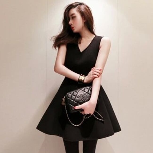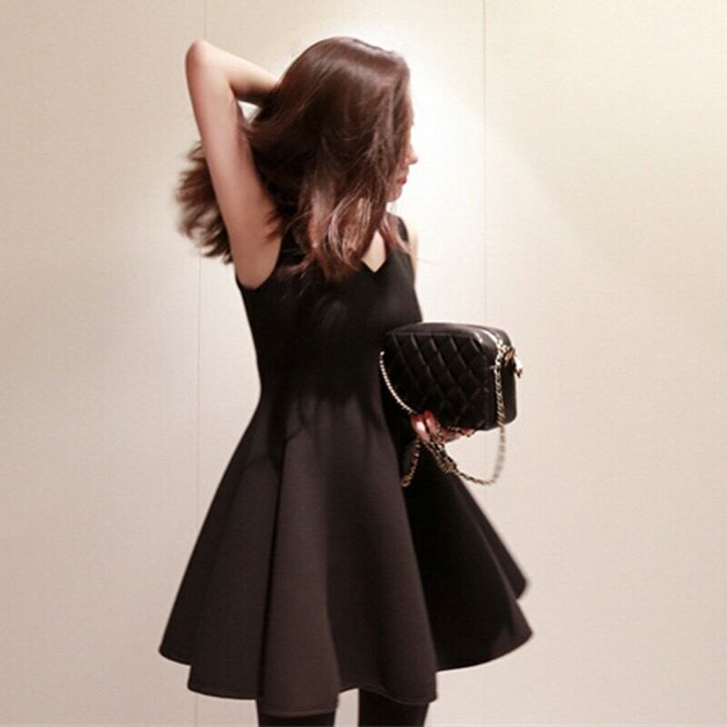 ワンピース ドレス ショート丈 ミニ丈 ノースリーブ Vネック フレア 無地 スリム 上品 Aライン 大人可愛い パーティー お呼ばれ デート 女子会 秋 春